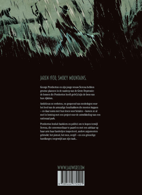 Serena is gebaseerd op een roman van de Amerikaanse schrijver Ron Rash. Het boek werd verfilmd in 2014 onder regie van Suzanne Bier en is bewerkt tot een graphic novel in het Frans door het echtpaar Anne-Caroline Pandolfo (scenario) en Terkel Risbjerg (tekeningen) bij uitgeverij Sarbacane in 2018. Het verhaal is te situeren in de Verenigde Staten na de Grote Depressie in 1930 met een enorme werkloosheid en goedkope arbeidskrachten enerzijds en rijke ondernemers die menen zich alles te kunnen permitteren, zelfs ten koste van de natuur, anderzijds.