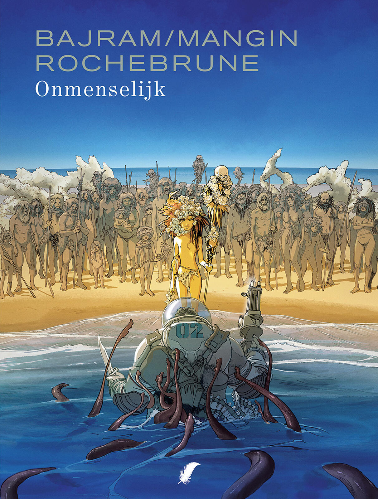Onmenselijk heeft nu al de prijs van de beste cover van dit jaar beet. Met een prachtige lokale vernisdruk dwingt het elke stripliefhebber om dit blindelings te kopen. Ook wij waren onmiddellijk bedwelmd. De start van het verhaal zette ons helemaal op het puntje van de stoel. Dit zijn Dennis Bajram (Universal War) en Valérie Mangin (Luxley, De Gesel Gods, Alex Senator) op hun best. Ook de tekeningen van Thibaud de Rochebrune bevielen ons. De decors zijn machtig uitgewerkt en fantastisch ingekleurd. Ja, ja, dat is echt goed. Maar ergens halverwege raakten we uit onze roes. Plots zaten we in een möbiusring. Eenzelfde thema en scène werd, alsof we een De Blauwbloezen lazen, tot viermaal toe herhaald. Nauwelijks voegden de auteurs er elementen aan toe. Waarom bleven ze zo aan de oppervlakte? Ze hadden een paar fantastisch filosofische thema’s — Wat is de prijs van vrede? Is vrijheid fysiek lijden waard? — aangeboord, maar ze doen er nauwelijks iets mee. Ook de karakters van de bemanning blijven onderontwikkeld. Erger nog, het laat je koud wat er met hen gebeurd. En voor we het goed beseften, lazen we de rest van deze strip uit op automatische piloot. We genoten van de prachtig ingekleurde verpakking, van het ritme, de paginaopbouw, enzovoort maar het stuitende gebrek aan ambitie van de scenaristen ergerde ons. De prachtige epiloog kwam voor ons te laat. Hier zat zoveel meer in.