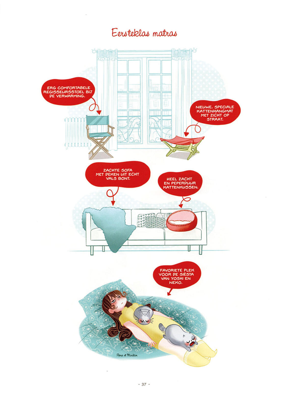 Lucy uit deze strip gaat nog enkele fases verder. Heel haar sociale leven lijkt te lijden onder de zorg voor haar twee poezen Neko en Yoshi. In een paginagrote gag serveren de auteurs je een herkenbare situatie die je weer even met je twee voeten op de grond zet en je de vraag doet stellen: Nee, zover ga ik toch niet, hé?! Om dan schoorvoetend te moeten toegeven dat je vaak op eenzelfde manier reageert en veel te veel verdraagt van je viervoetige huisgenoten.