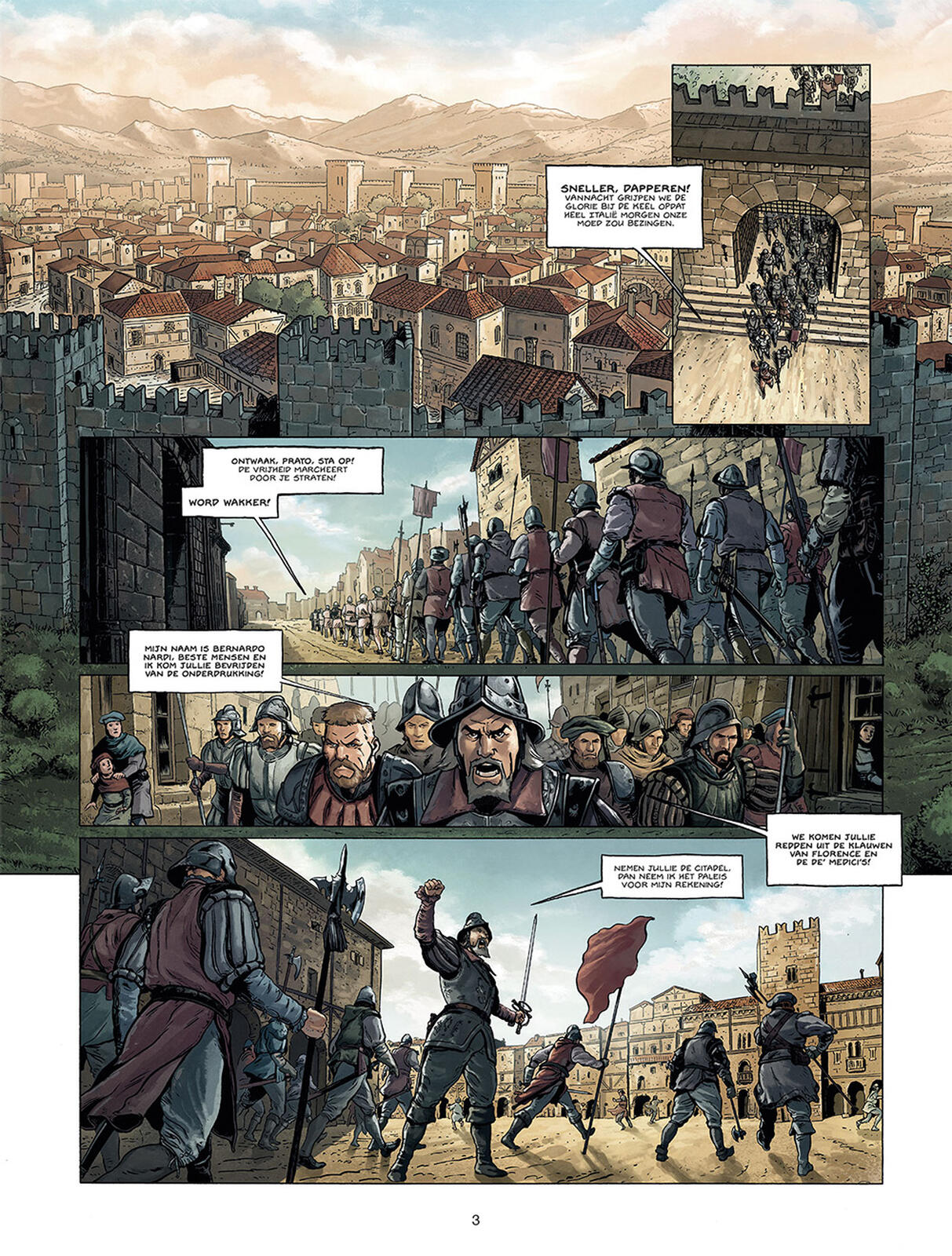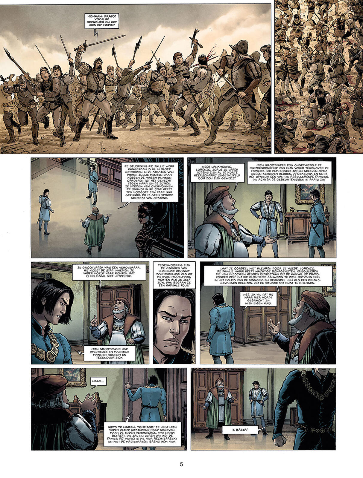We kunnen besluiten dat ook dit tweede deel van Medici vooral een leesstrip is geworden waarin het historisch verhaal van de Florentijnse familie centraal staat en de tekeningen het verhaal alleen maar versterken. Net als zijn voorganger ben je even zoet om de grote tekstbrokken te doorworstelen, maar je steekt er wel heel wat van op.