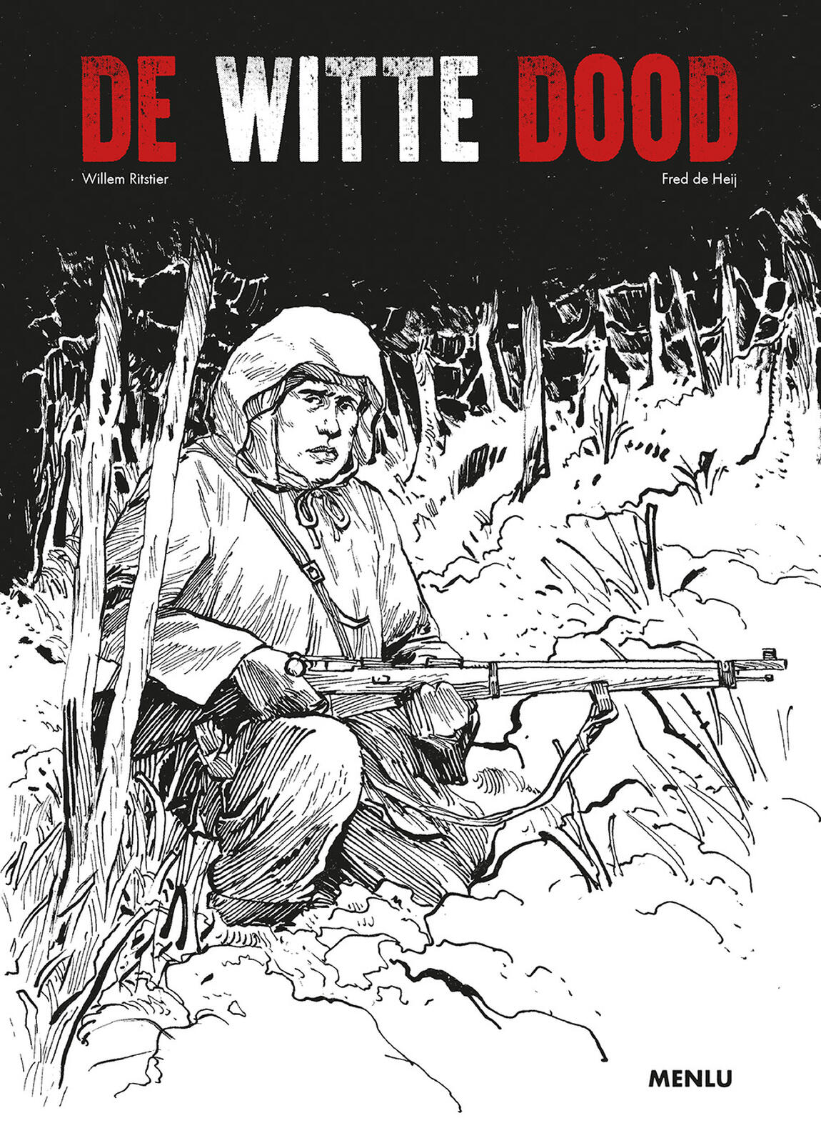 Nu, dertien jaar later, wordt het verhaal van deze uitmuntende jager door twee Nederlanders omgezet in een stripverhaal. Willem Ritstier, die verantwoordelijk is voor het scenario, kennen we van zijn werk voor het stripblad Eppo. Ander werk van de man is onder meer Nicky Saxx, de reboot van Roel Dijkstra, Claire DeWitt en Jenny Pine. Voor die laatste twee werkte hij samen met Fred de Heij, die hier ook verantwoordelijk is voor de tekeningen van De Witte Dood. De Heij is bekend van onder meer Haas en zijn eigen stripmagazine Pulpman, waarin een mix van horror, sociale satire, pornografie en geweld van zijn hand gepubliceerd wordt. Daarnaast laat hij in Pulpman ook ruimte voor andere artiesten om hun werk te promoten.