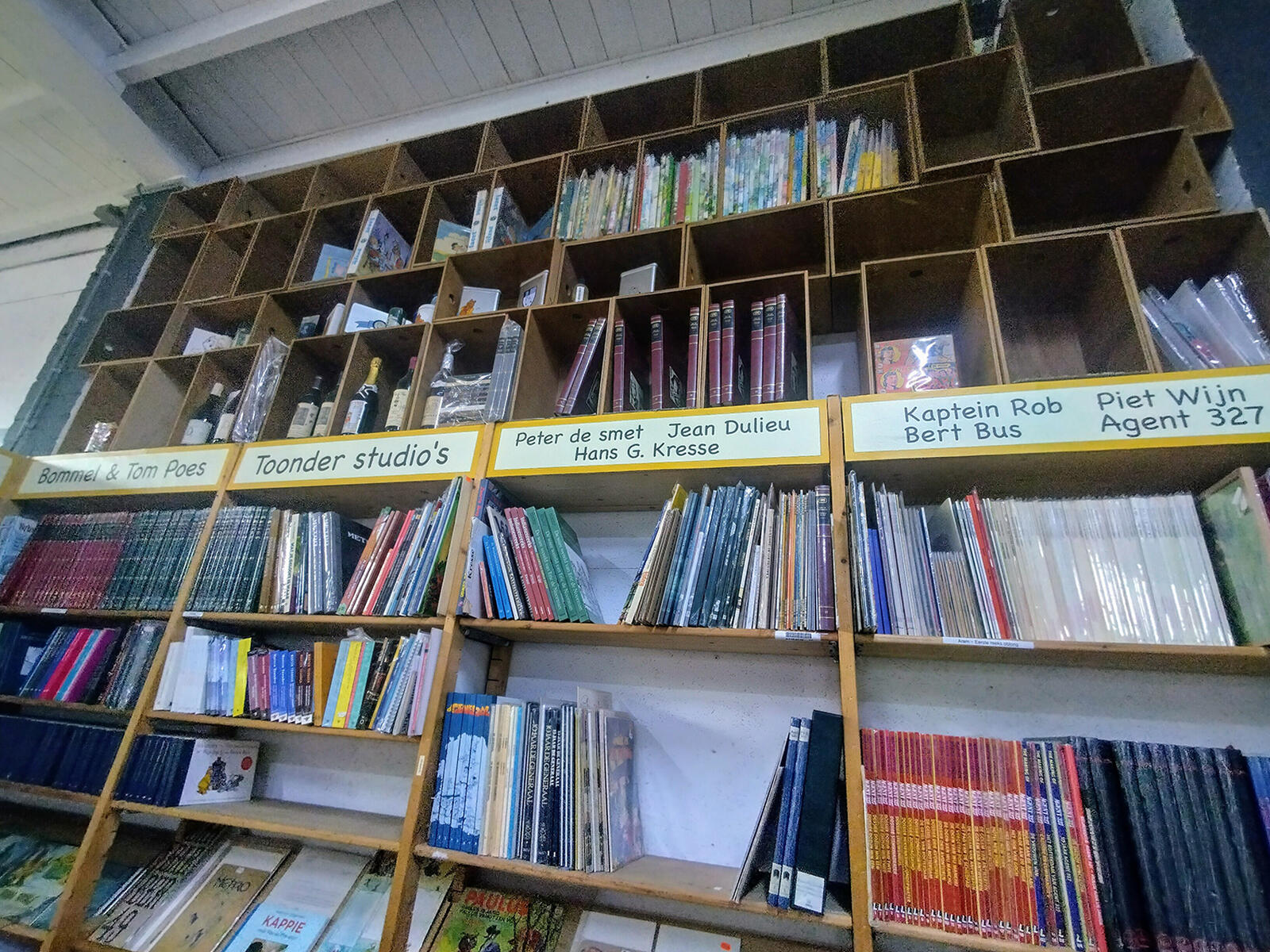 John: "Toen ik nog op de beurzen stond, verkocht ik alleen tweedehands en antiquarisch. Ik had daar onder meer materiaal van Marten Toonder en Piet Wijn in de aanbieding. Ik had ook alles te koop van de Lombard Collectie, Collectie Jong Europa en de Favorieten-reeks. Allemaal mooie uitgaves. De stand was twintig meter lang, en ik stond er bekend om het grootste aanbod aan Nederlands antiquariaat te hebben. Indien ik door een bepaald aanbod antiquarisch heen was, kocht ik ergens wel een nieuwe voorraad in. Mijn aanbod antiquarisch is de laatste jaren wel verminderd. Niet dat ik geen antiquarisch meer inkoop, maar ik ben me meer op andere zaken gaan richten. Als me iets aangeboden wordt, koop ik het eventueel nog wel."