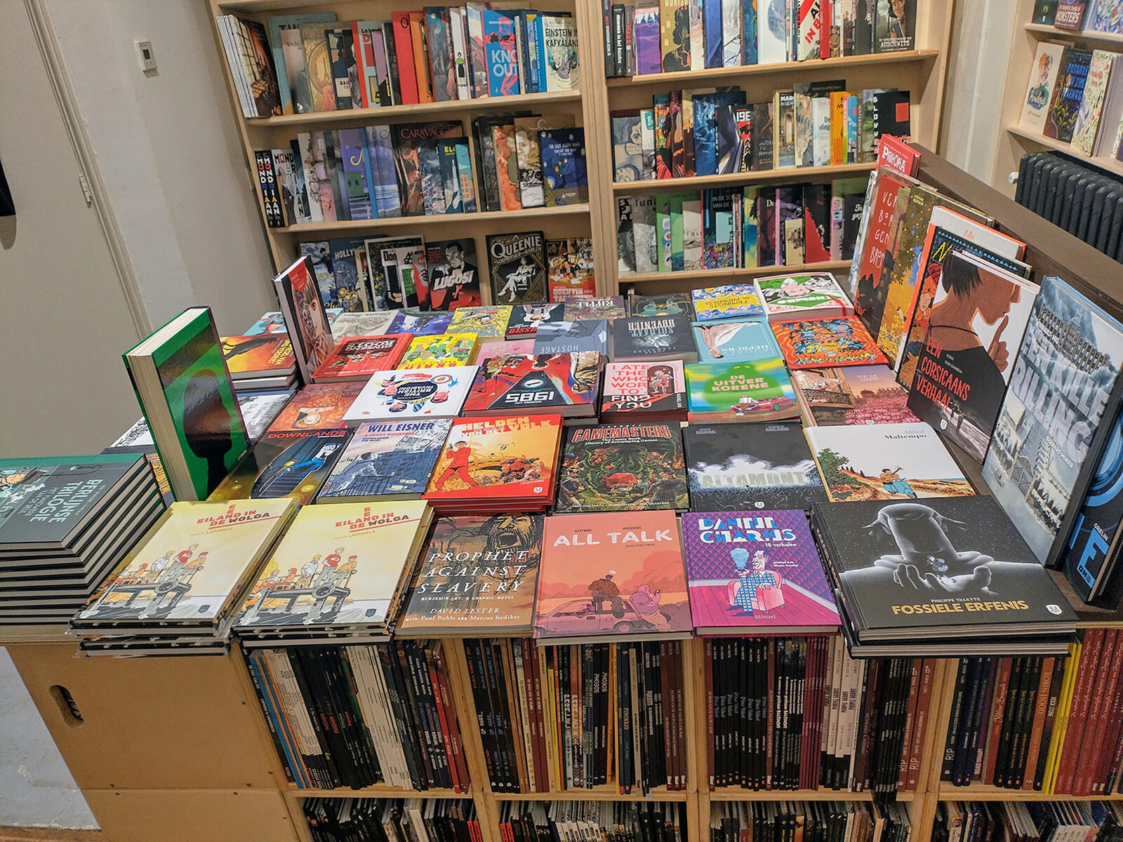 “Wat onze smoel is? Nou, wij doen het met iets meer het alternatieve aanbod, vooral op Engelstalig gebied. Dat heeft zeker te maken met de stad Nijmegen. Onze collectie graphic novels is enorm gegroeid de laatste jaren. Op Europees gebied zijn we goed te vergelijken met andere goed gesorteerde stripwinkels en proberen we een zo volledig mogelijk aanbod te verzorgen. Wat Engelstalig betreft, proberen we dus net wat andere dingen te doen, bijvoorbeeld door graphic novels over maatschappelijke zaken aan te bieden. Daarnaast is de winkel ruim ingericht en staan bijna alle albums en comics met de cover zichtbaar op genre uitgestald. Als stripliefhebber ben je visueel ingesteld. Dan laten we je ook graag zien wat we hebben. Kartonnen dozen en bakken zul je hier niet vinden.”
