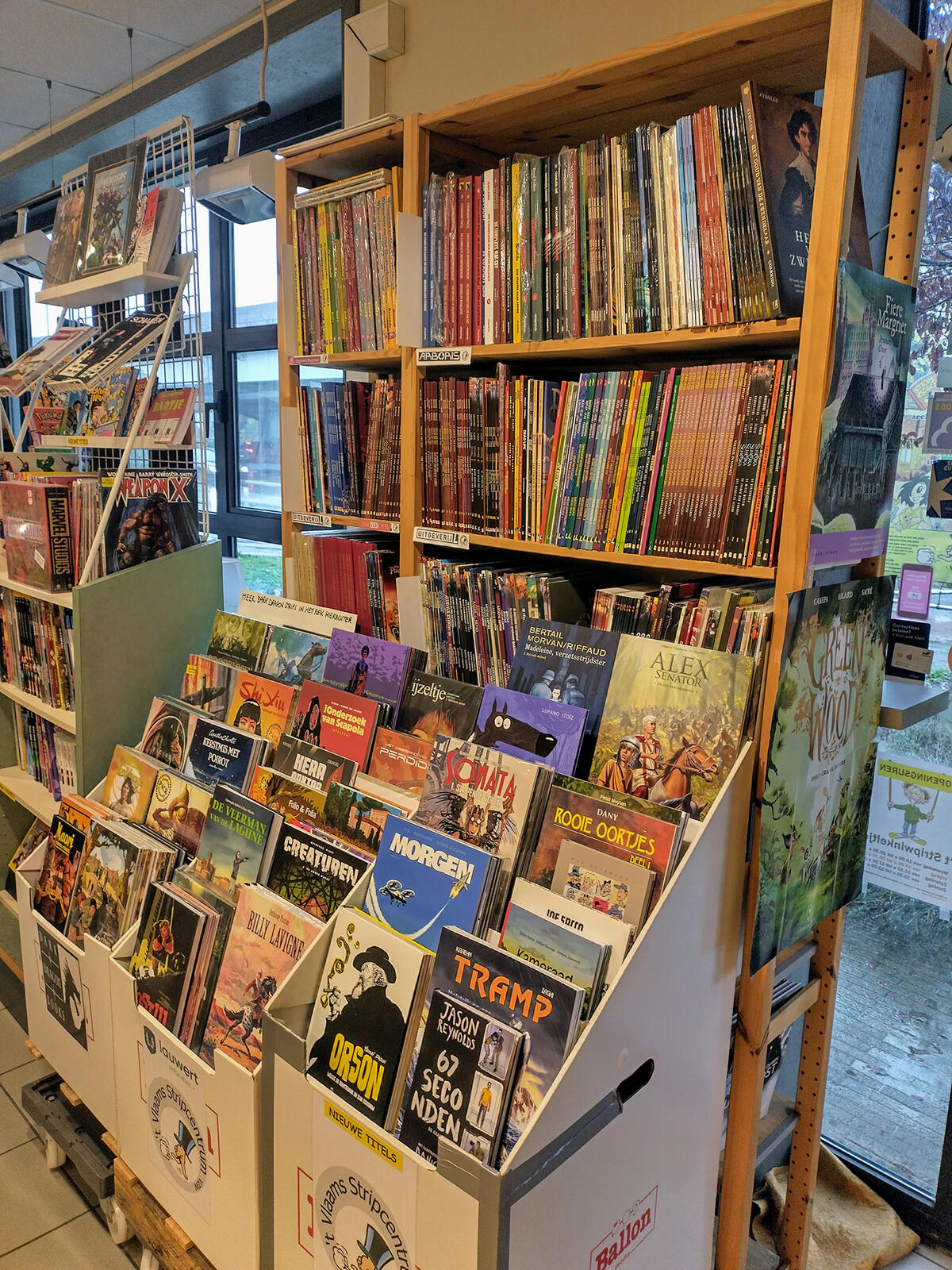"Nederlandstalige graphic novels hebben we ook in ons aanbod, maar Engelstalige kan je bij ons bestellen. Soms raad ik klanten aan om eens te kijken op jullie website, zodat ze een idee hebben wat er allemaal kan aangeboden worden. Natuurlijk zijn de topreeksen degene die best verkopen in onze winkel. Maar ook de Handelsblad-uitgaven van Piet Pienter en Bert Bibber doen het goed, terwijl dat nochtans heel oud materiaal is. Er zijn ook bestsellers, zoals Lord of the Flies van Aimée de Jongh. Wanneer je dat boek vergelijkt met de nieuwe Orson over Orson Welles, dan heb je te maken met een ander publiek. Dat verkoopt minder goed, maar heeft wel gegadigden."