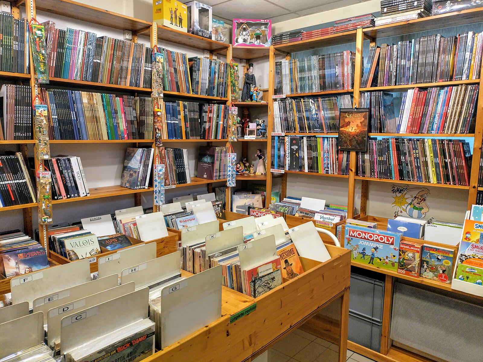 Terwijl de oppervlakte van de winkel 25 m² bedraagt, is de stripbibliotheek met zijn 150 m² heel wat groter. Er is een beneden- en bovenverdieping, en ook nog een aparte kamer met strips voor volwassenen. Bovendien is er ook een archief, maar deze strips zijn enkel raadpleegbaar en niet uitleenbaar. In dat archief zijn er veel eerste drukken te vinden.