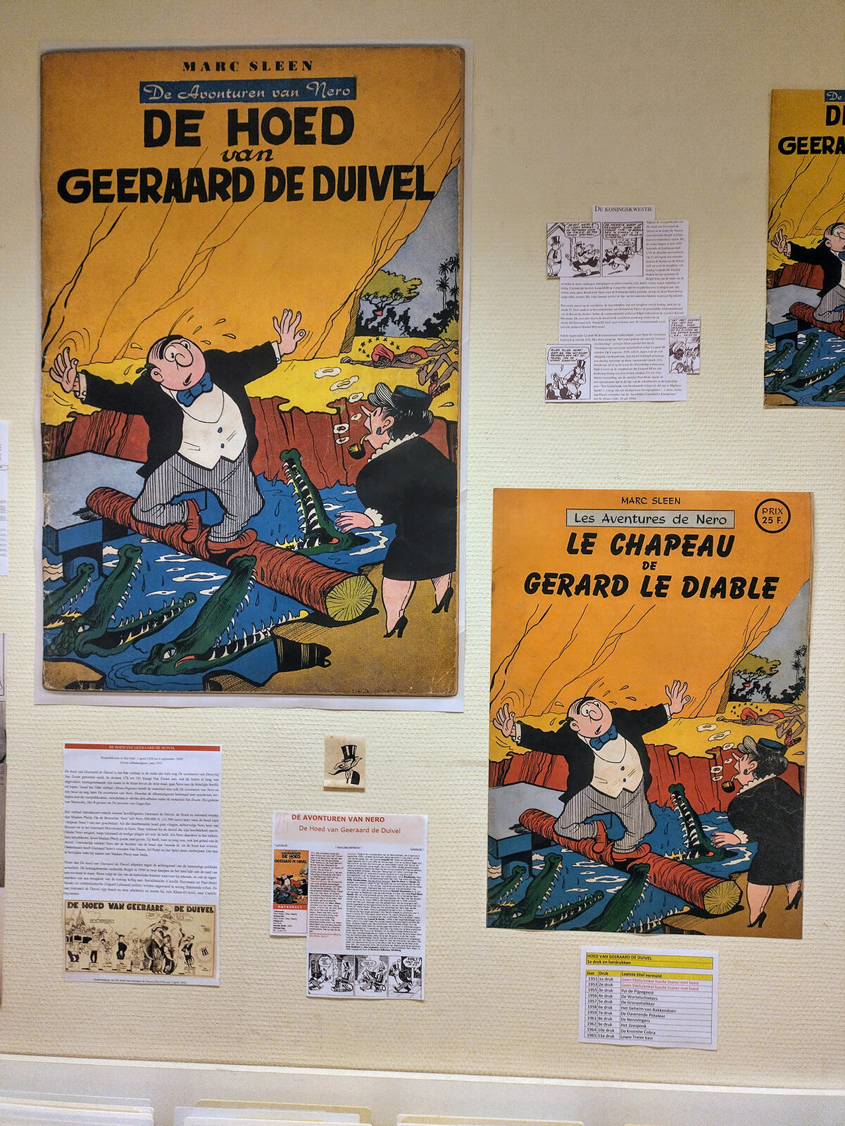 Als logo gebruikt de stripspeciaalzaak de afbeelding van de hoed uit het Nero-album De Hoed van Geeraard de Duivel. Ter illustratie daarvan hangen aan een muur in de bibliotheek naast elkaar de covers van alle drukken van dat album.