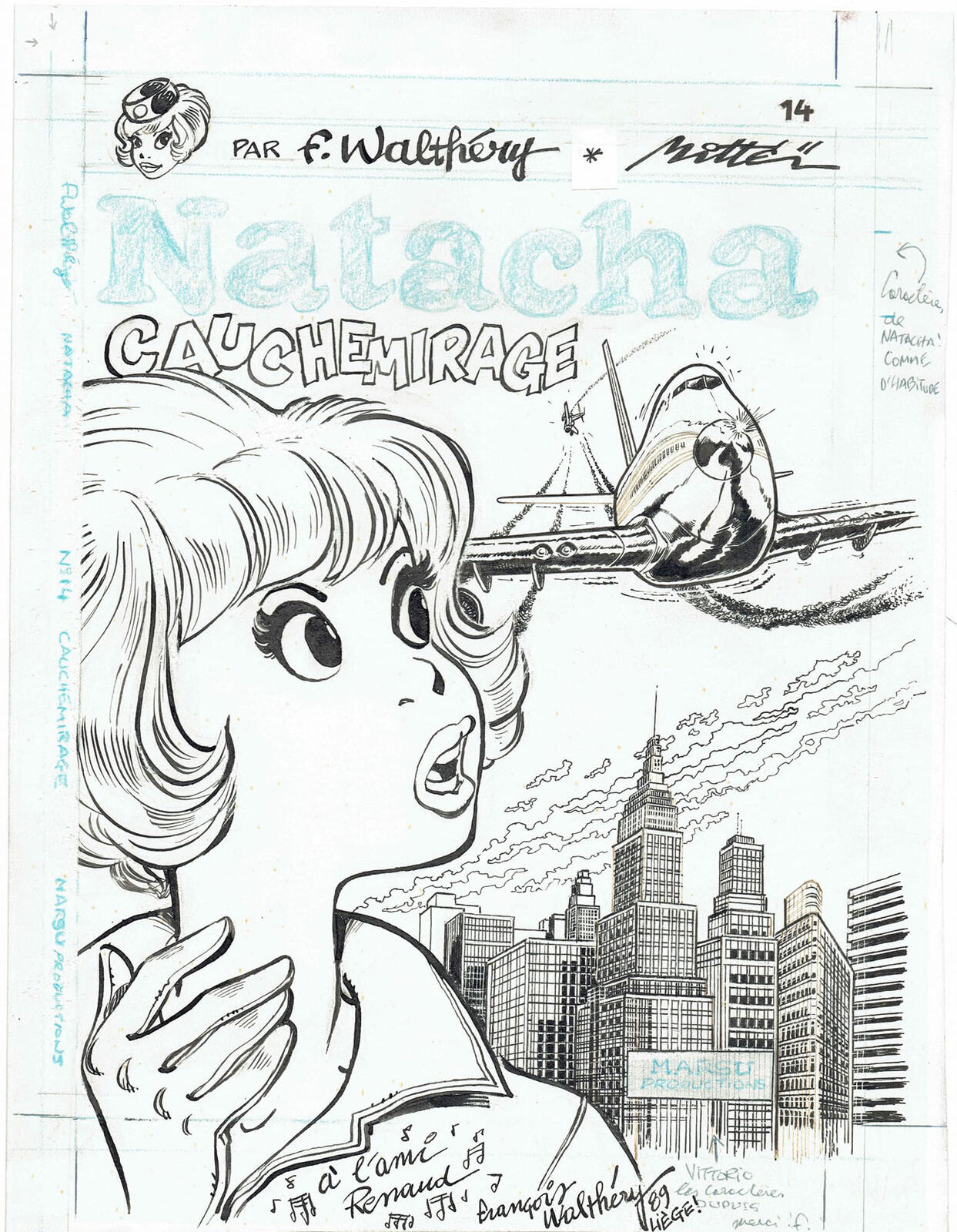 In 1989 verscheen Natasja 14: Luchtspiegelingen bij Marsu Productions. Voor dat verhaal van Mythic tekende François Walthéry een cover die het uiteindelijk niet heeft gehaald. De werkelijk gepubliceerde cover zie je onderaan dit bericht, hoewel Walthéry liever zijn eerste ontwerp zag. Het ontwerp werd nog wel gerecupereerd voor de titelpagina van het album. Daarna schonk Walthéry dit ontwerp aan een van zijn beste vrienden: de Franse zanger en stripliefhebber Renaud.