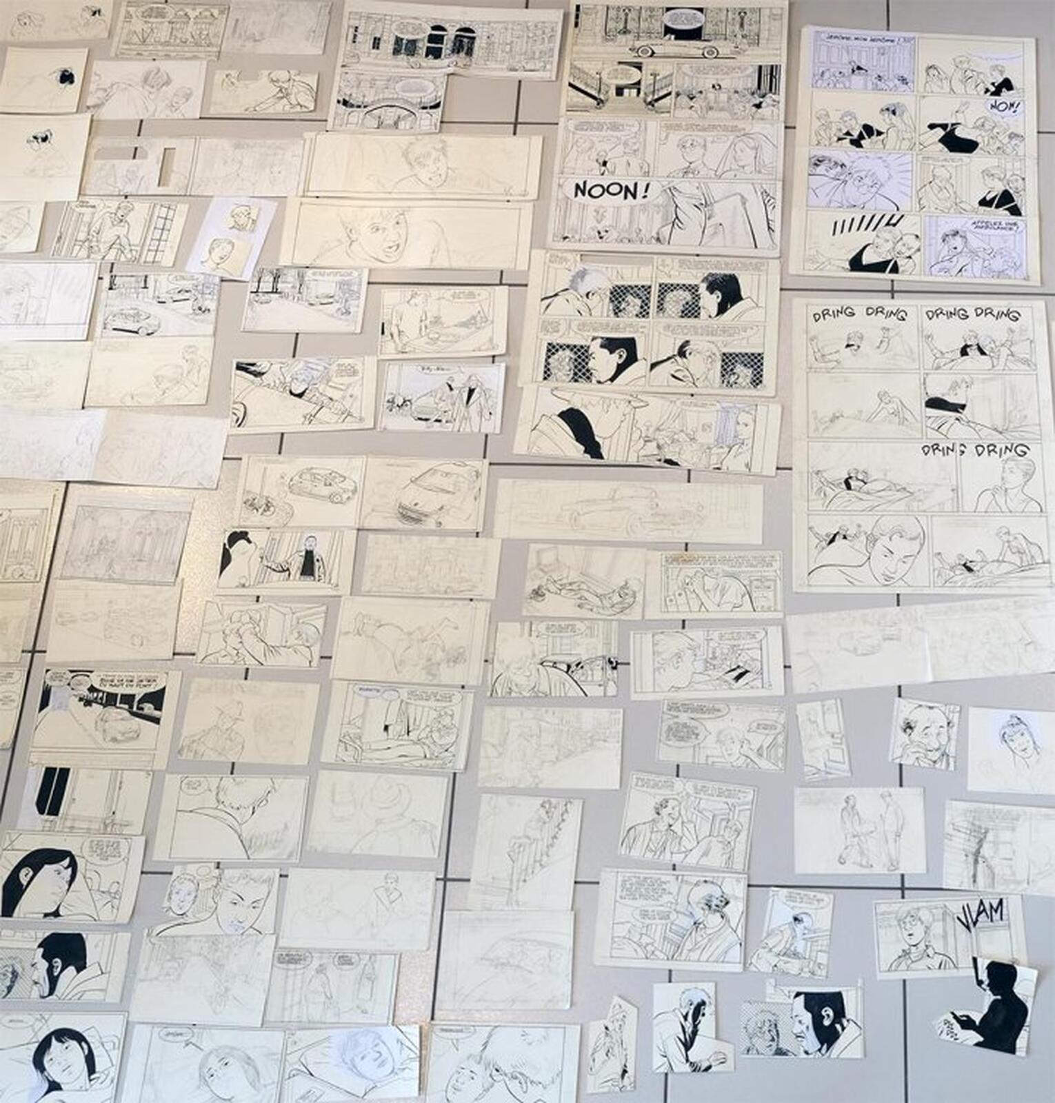 De detectivereeks Jerome K. Jerome Bloks viert in 2022 zijn veertigste verjaardag. Deze foto toont aan dat Alain Dodier zijn strips allerminst op automatische piloot uitwerkt. Het zijn prenten en stroken die de auteur maar blijft hertekenen, uitknippen en kleven op zijn originelen om tot de best leesbare pagina's te komen.