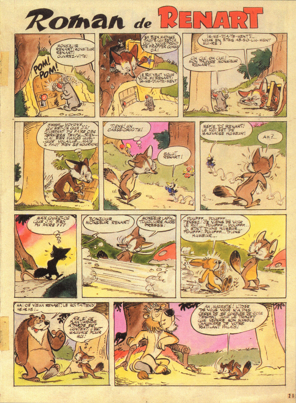 Het duo Albert Uderzo en René Goscinny kennen de meesten wel van het fenomeen Asterix, maar dat was lang niet hun eerste en enige samenwerking. In 1959 werkten ze voor het nulnummer van het Franse stripweekblad Pilote in opdracht van en samenwerking met het commerciële radiostation Radio Luxembourg. Ze werkten een komische versie van Reynaert de Vos uit. Uderzo schilderde rechtstreeks de inkleuring op het origineel naar zijn grote voorbeeld Edmond-François Calvo, de auteur van Het Beest Is Dood.