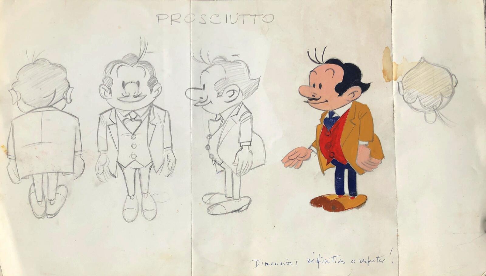 Ook van Vlinder en Spek uit de reeks Guus Slim van Maurice Tillieux, Bollie en Billie door Jean Roba, Spaghetti en Prosciutto uit de reeks Spaghetti van Dino Attanasio en ontdekkingsreiziger Max van Guy Bara werden dergelijke ontwerpen geveild. De ontwerpen van alle gemelde tekenaars zie je hieronder.