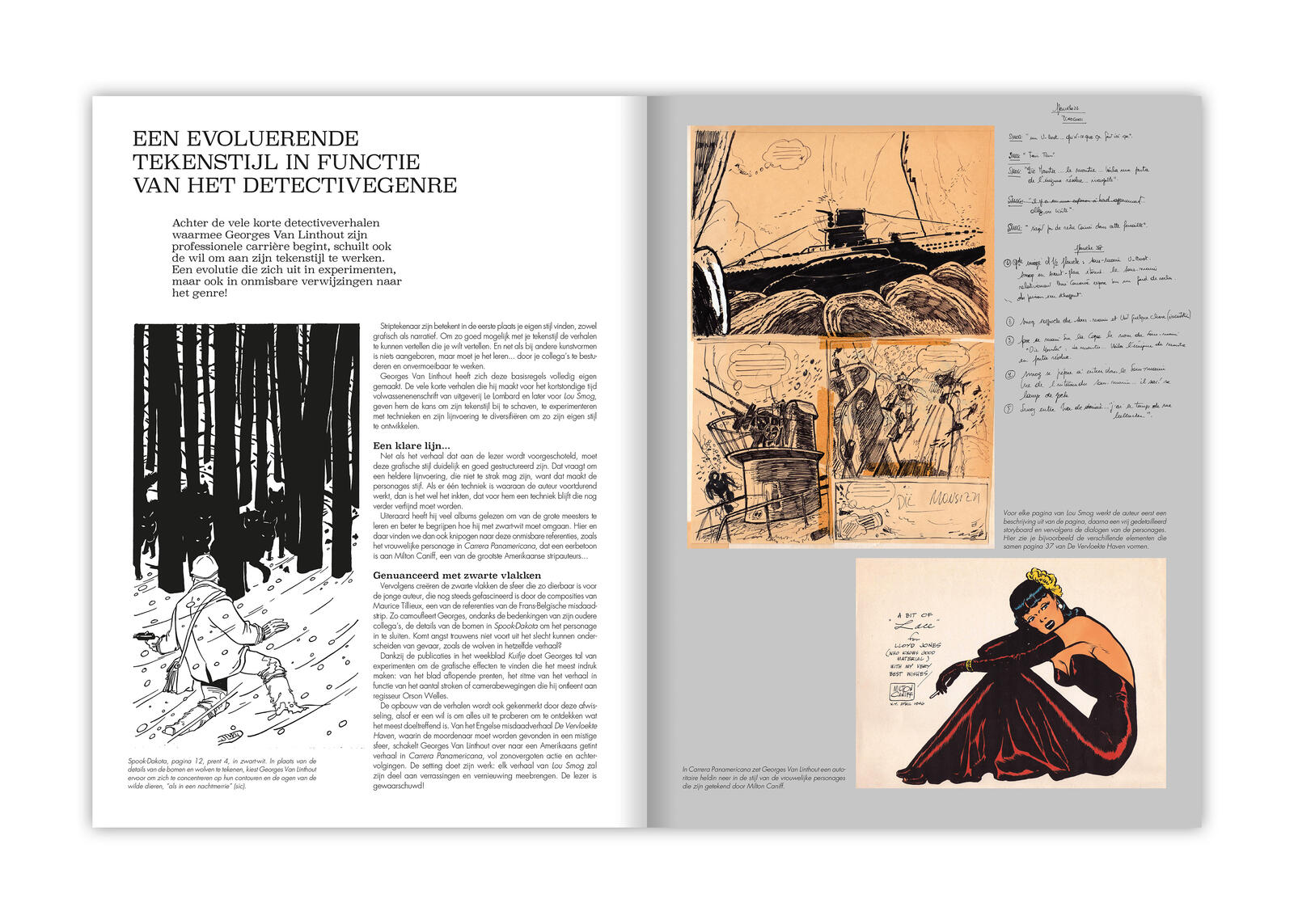- Dossier: 8 pagina's, samengesteld door Charles-Louis Detournay. Leven en werk van de jonge Georges Van Linthout tot en met het ontstaan van Lou Smog voor Kuifje. Een hoofdstuk over de evolutie van de eerste verhalen sinds de eerste publicatie en een artikel over de tekenstijl. Een vijftal kaderstukken vertellen over andere aspecten van de auteur en diens creatie. Op een pagina wordt de invloed van Milton Caniff geduid, met een knipoog in het verhaal Carrera Panamericana. Tekeningen voor kalenders, een coverontwerp en andere unieke illustraties vullen de dossierpagina's aan.