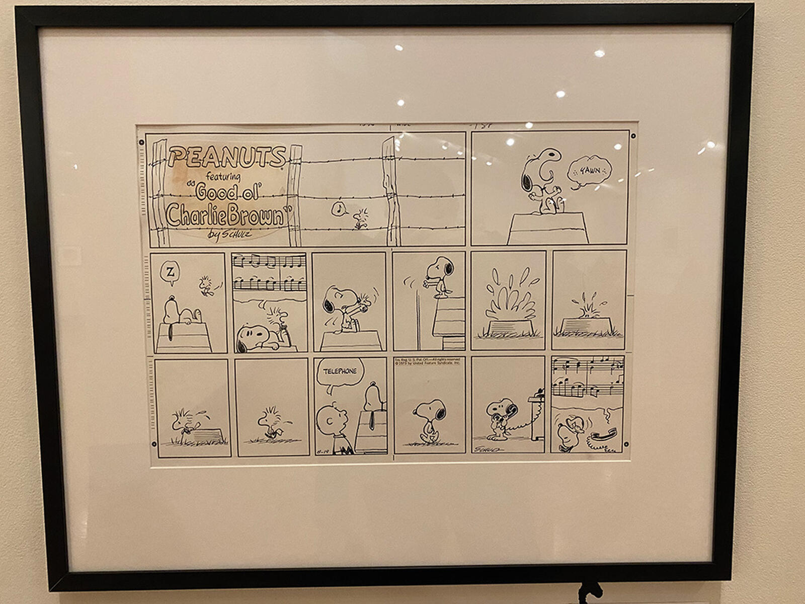 Een muur behangen met de covers van Peanuts-vertalingen in andere talen demonstreert dat Schulz zich terdege realiseerde dat zijn broodjes pas echt gebakken waren eens Peanuts internationaal ging. We weten al hoe vooral de Aziatische wereld, en Japan in het bijzonder, de comic-Beagle en zijn familie van malloten omarmde, maar grappig is om ook enkele Dupuis-uitgaven te zien verschijnen in dat overzicht. Wat zoekwerk toont dat Dupuis al begin jaren 1960 drie Franstalige pockets uitbracht in de collectie Gag de Poche (de nummers 23, 28 en 36) met eens electie van Peanuts-cartoons. Lang niet de enige edities voor de Belgische markt, maar waarschijnlijk wel bij de eerste. Er hangt ook een Nederlandstalige uitgave tussen het internationale overzicht.