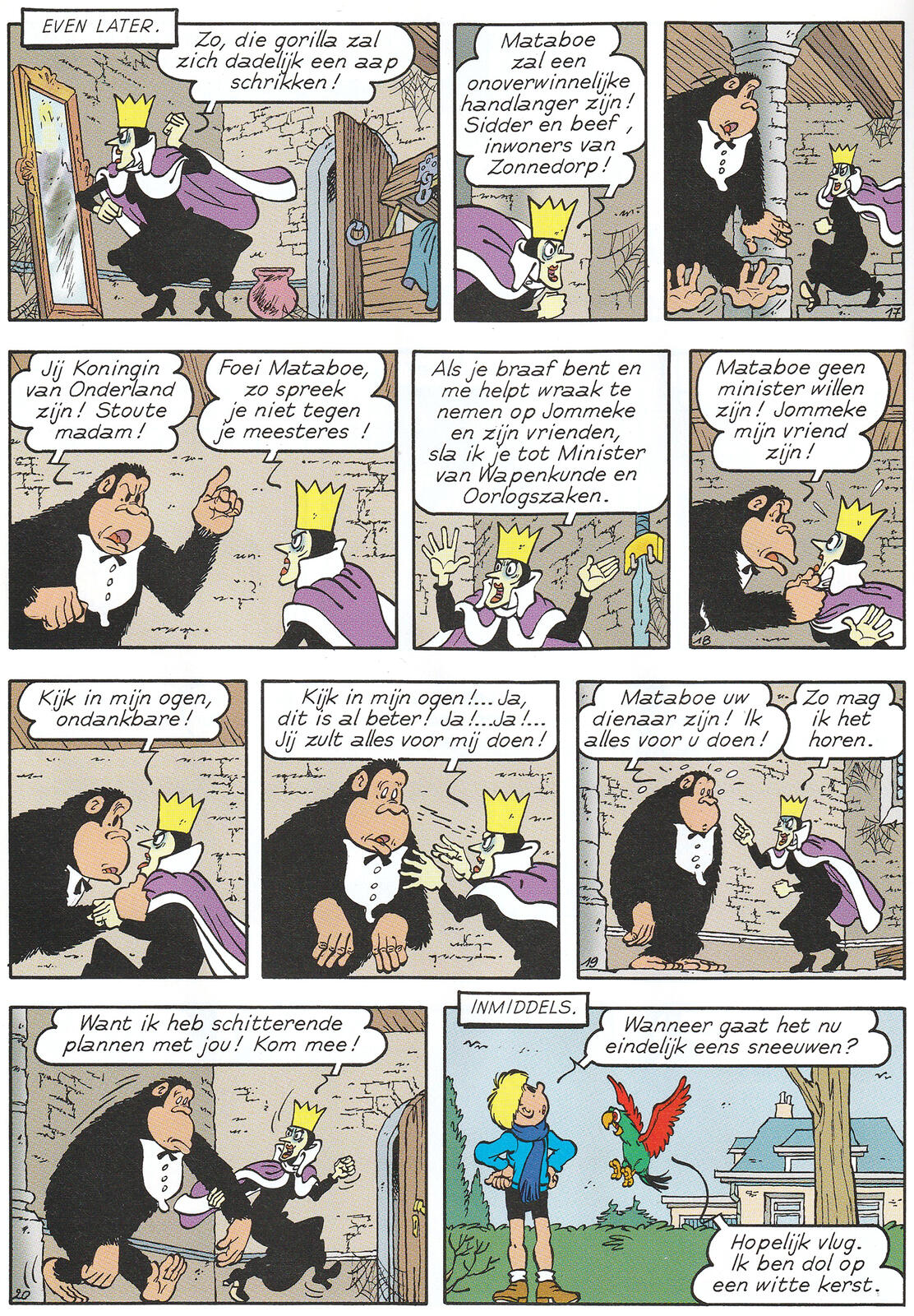 Morjaeu: “Nee, dat was voor mij geen probleem. Jommeke en zijn vrienden konden immers makkelijk naar de Far West reizen of naar een eiland of plaats waar de tijd was blijven stilstaan, zoals in Het Verkeerde Land (deel 21), In Pimpeltjesland (deel 32), De Rare Kwibussen (deel 224),...”
