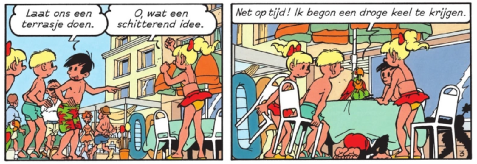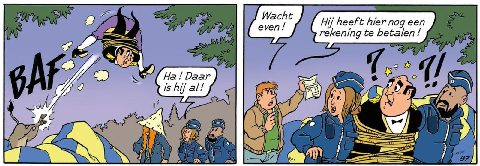 Je hebt de hoofdfiguren al heel goed onder de knie. Ik zie eigenlijk nauwelijks een verschil met de albums van andere tekenaars en ik ben er zeker van dat de jongere lezers helemaal geen verschil zullen zien. Ook de decors zijn typisch Jommeke. Alles voelt heel vertrouwd aan. Missie geslaagd dus! Denk je er ook zo over? Of vind je zelf dat er nog verbeterpunten zijn waaraan je in de toekomst moet werken?