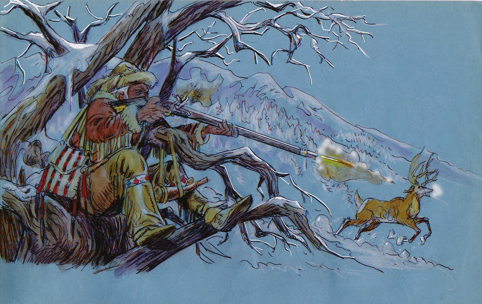 Ramaïoli: "Volgens de familielegende leerde ik lezen door strips. Ik vroeg mijn moeder en oma altijd om de woorden in de tekstballonnen voor te lezen die uit de monden van de personages kwamen. Zo leerde ik het alfabet. Toen ik acht of negen was, won ik aan het einde van het schooljaar een prijs: een prachtig geïllustreerd exemplaar van De Laatste der Mohikanen van James Fenimore Cooper, gebonden in nepleer. Het was het eerste echte boek dat ik las, althans... geen stripboek. Niet lang daarna las ik De Hertendoder en De Verkenner, waarin dezelfde personages voorkwamen. Ze hadden tekeningen van Henri Dimpre of Raoul Augier, en ik droomde ervan om ooit zoiets te maken. Pas veel later, toen ik zeventien was, las ik de volledige cyclus van vijf boeken die samen Leatherstocking Tales vormen. De kinderboekversies die ik destijds las, waren ingekort tot 180 pagina's. De complete boeken waren drie keer zo dik en veel complexer en volwassener dan ik me herinnerde! Ik kende de verfilming van De Prairie, maar De Pioniers was mij onbekend. Zoveel jaren later voel ik nog steeds nostalgische gevoelens voor Natty en zijn Mohikaanse broer Chingachgook. Ik realiseerde me ook dat de verfilmingen vaak weinig aandacht hadden voor de juiste kleding, wapens of zelfs de sfeer van de romans. Zelfs in de mooie film van Michael Mann werd de context goed benaderd, maar het verhaal leek nauwelijks op het originele boek. Mann gaf toe dat hij het boek niet had gelezen en het scenario van de film uit 1936 had gebruikt, waarin Randolph Scott de rol van Hawkeye speelde.