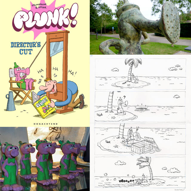 Een bronzen Plunk was er dus al en na de Bronzen Adhemar, de belangrijkste Vlaamse stripprijs, voor Cromheecke komt daar in juli 2015 nog een houten Plunk bij. Tijdens de Stripdag in het Arboretum in Kalmthout zaagt boswachter Pol Trekker de figuur uit een houten blok.