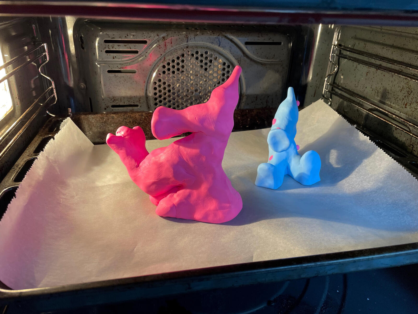 LUC: “Ik vond de Pluchen Plunk eigenlijk beter klinken. (lacht) Ik kom uit een beeldhouwersfamilie, maar ben blij dat de meeste daarvan niet meer leven zodat ze me niet bezig kunnen zien wanneer ik de Plastieken Plunk maak. Daarvoor gebruik ik polyester, een materiaal dat verschrikkelijk onhandig is om mee te werken.”