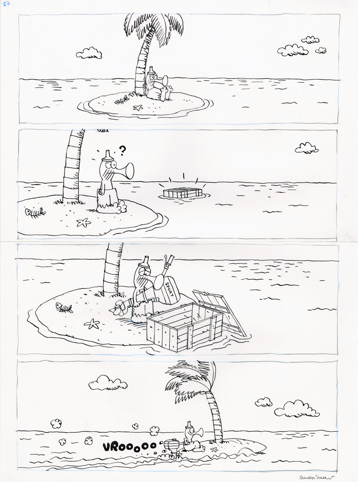 LAURENT: “Dat is een van de moeilijkste stripvormen. Het is een uitdaging om een grap te maken zonder woorden. Toch vonden we de nodige weerklank bij ons eclectisch lezerspubliek, vooral van professionals zoals collega’s en de pers.”