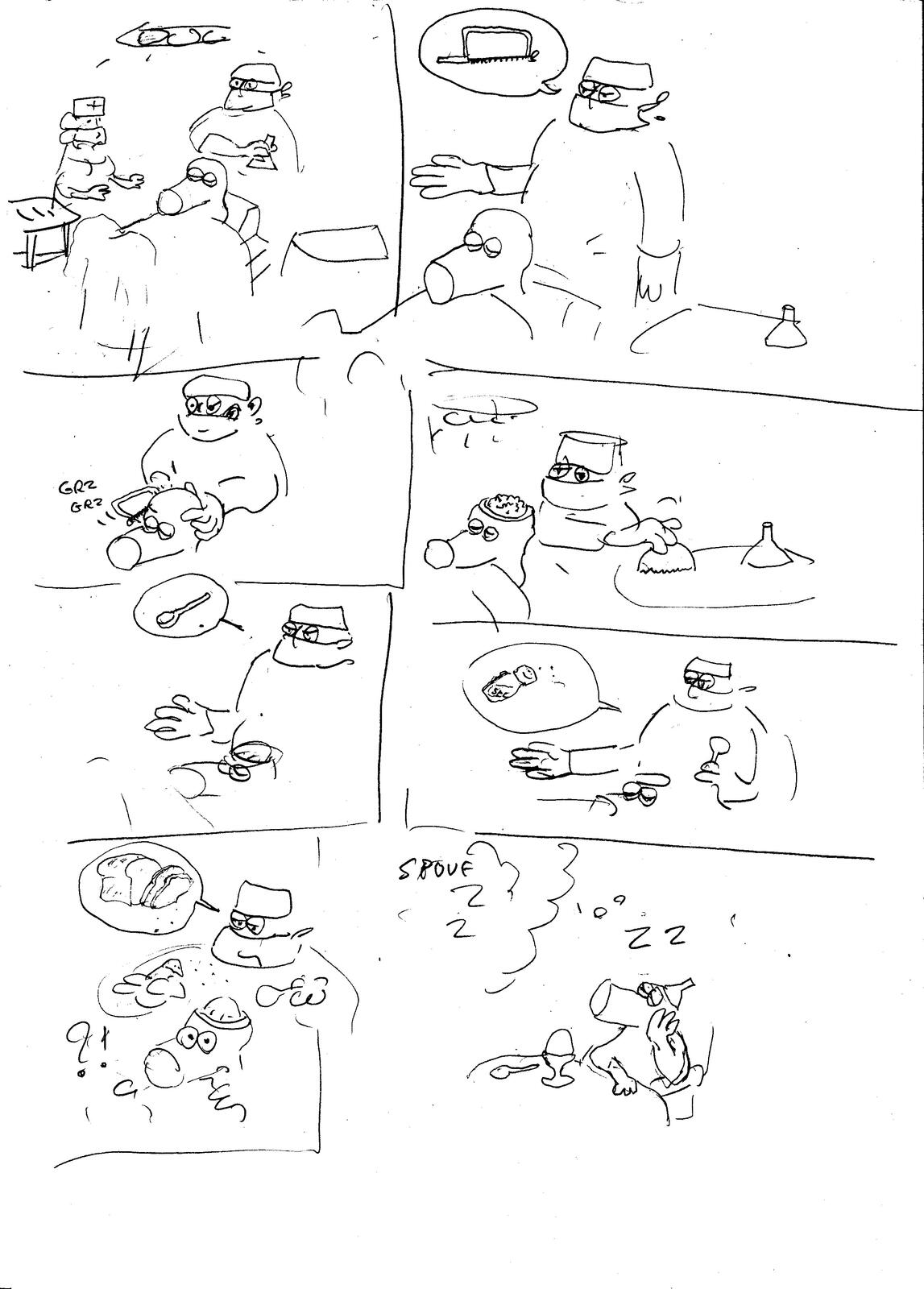 LAURENT: “Een aantal van die storyboards zijn uitgewerkt tot animatiefilmpjes door Ka-Ching Cartoons, een studio uit Rotterdam. Je vindt ze nog op YouTube, ze zijn zeer geslaagd. De muziek werd ingespeeld door een Brusselse jazzmuzikant.”