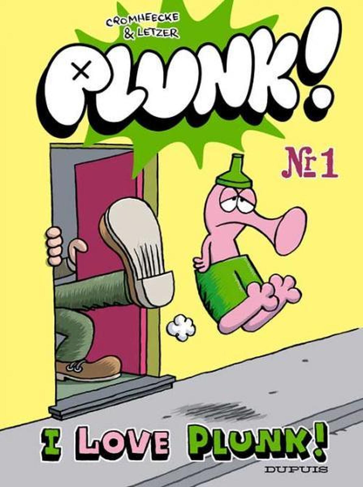 LUC: “In die tijd kwam er zoveel brol op de markt van dingen zoals My Little Pony, de Teenage Mutant Ninja Turtles en de Snorkels dat wij dachten: ‘dat proberen we zelf ook eens.’ Au fond is Plunk gewoon de definitie van een idiote stripfiguur. Oorspronkelijk had hij nog een strik en gaten in zijn neus, als een soort gieter. Later is hij eerder een alien geworden. We vonden ook dat hij een opvallende kleur moest hebben, zoals de Smurfen en de Simpsons.”