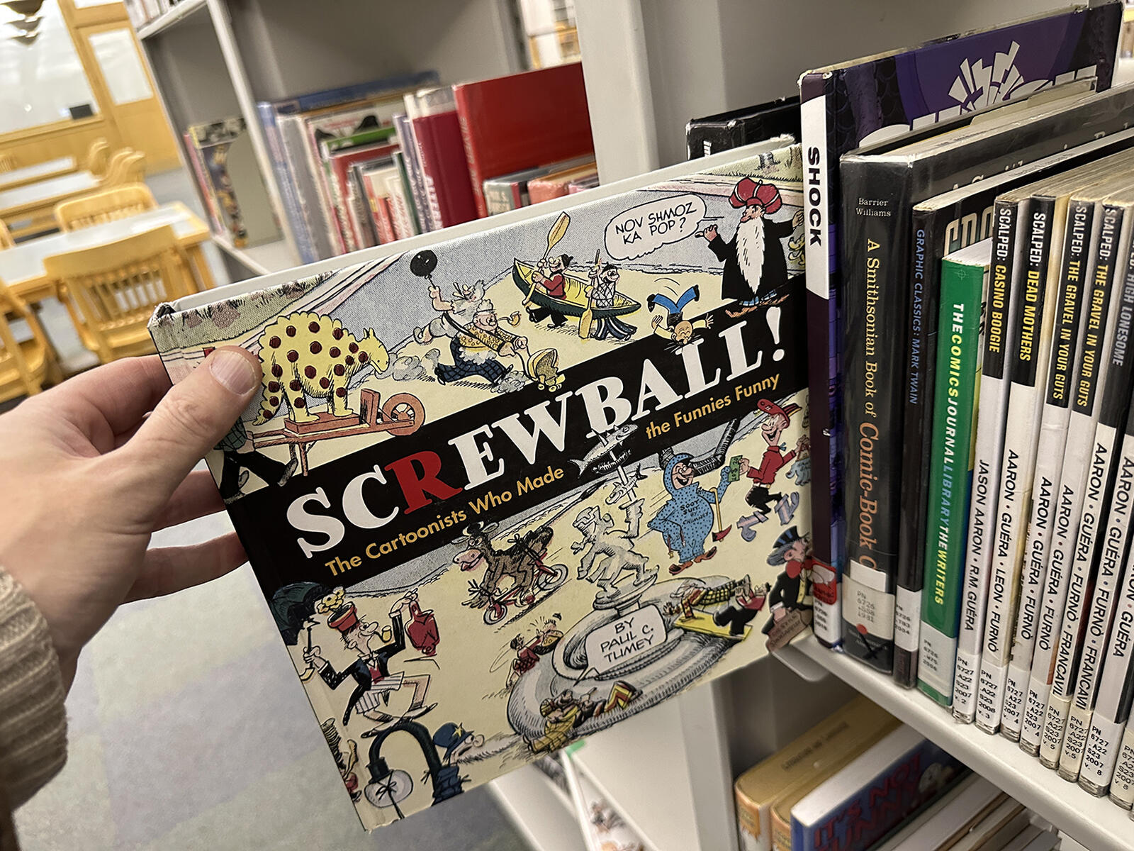 Wanneer ik naar het toilet ga, ontdek ik twee ingekaderde originelen van de krantenstripreeks Shoe van Jeff MacNelly en ook een karikatuur van Caray van MacNelly’s hand. De twee gags hebben baseball als onderwerp. De komische reeks vertelt over werknemers bij een krant, allen getekend als vogels.