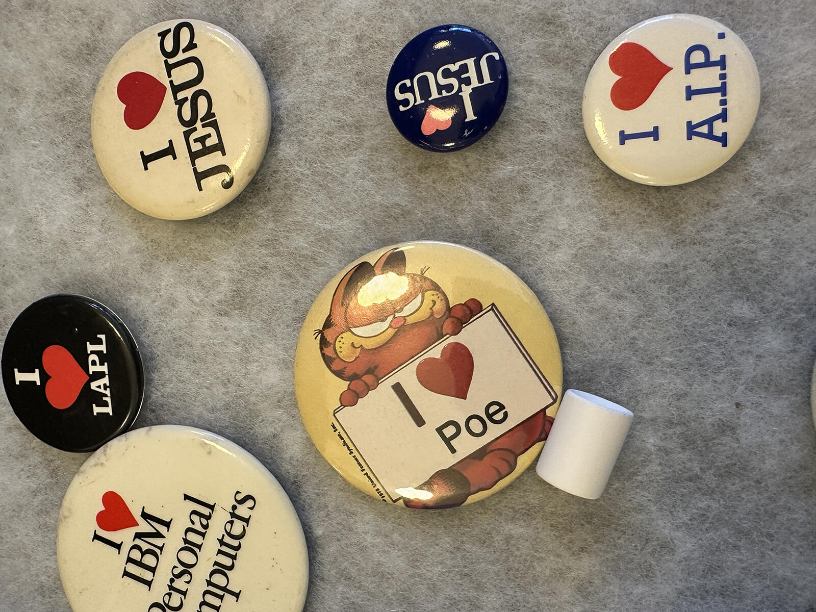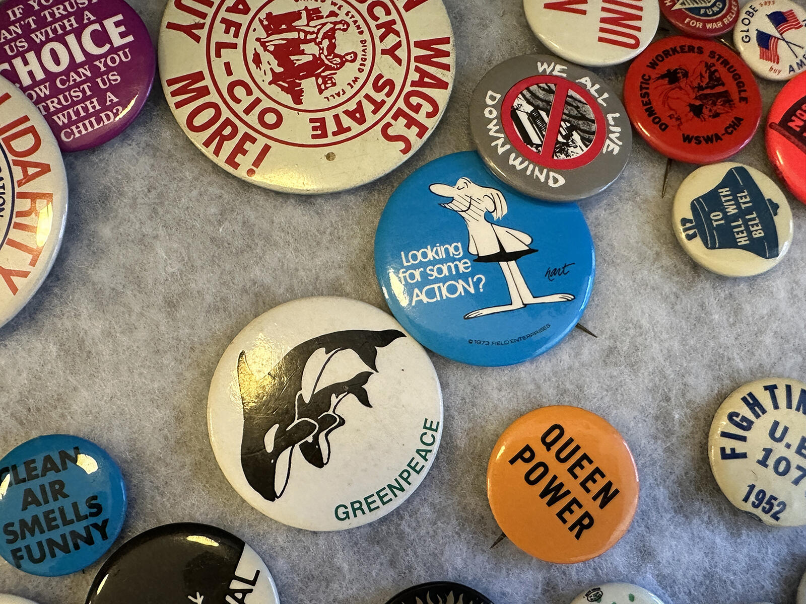 Het museum is eigenlijk gevestigd in een fotokopiezaak en een bedrijf dat zelf buttons fabriceert. Als bezoeker sta je gewoon tussen de erg vriendelijke mensen die er hun job uitvoeren. Ik mag ze alles vragen en ik krijg ook wat uitleg. Tussen de duizenden buttons die ik te zien krijg, zitten er heel wat van politieke aard, speldjes van clubs en verenigingen en uiteraard heel veel pop culture met stripfiguren. Ik zie er heel wat geschiedenis en nostalgie passeren.