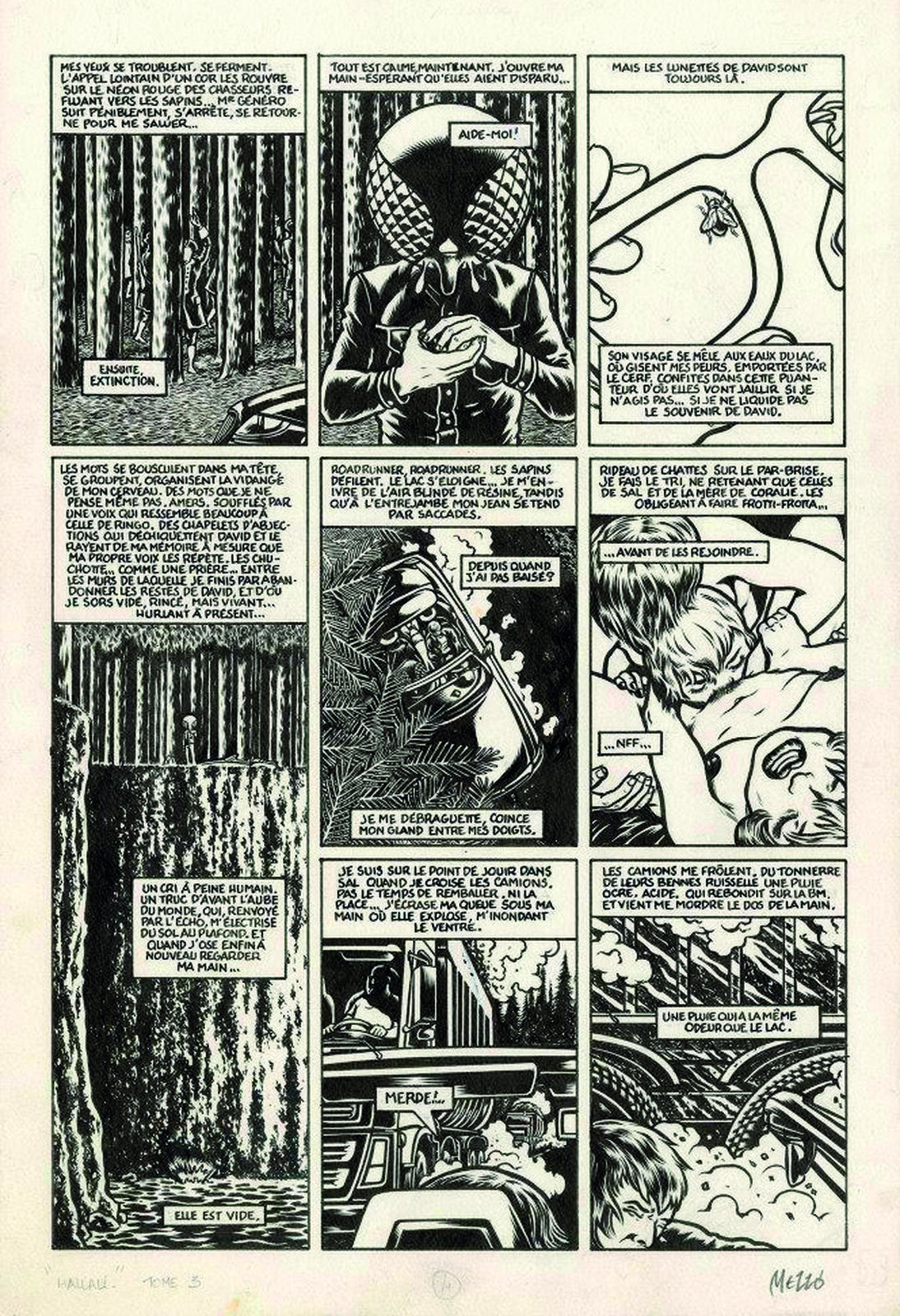 "Mezzo, geboren in Drancy in 1960, werd aanvankelijk beïnvloed door de toppers van de Klare Lijn (Hergé, Ever Meulen, Joost Swarte, Yves Chaland...), maar ook door de Amerikaanse klassiekers (Winsor McCay, Chester Gould, Will Eisner) en talenten uit de underground (Rick Griffin, Robert Williams, Robert Crumb). Hij ontwikkelt al snel zijn eigen stijl en wordt een van de grote meesters van de zwart-wittekening, een onbetwiste leider van de 'Zwarte Lijn'.