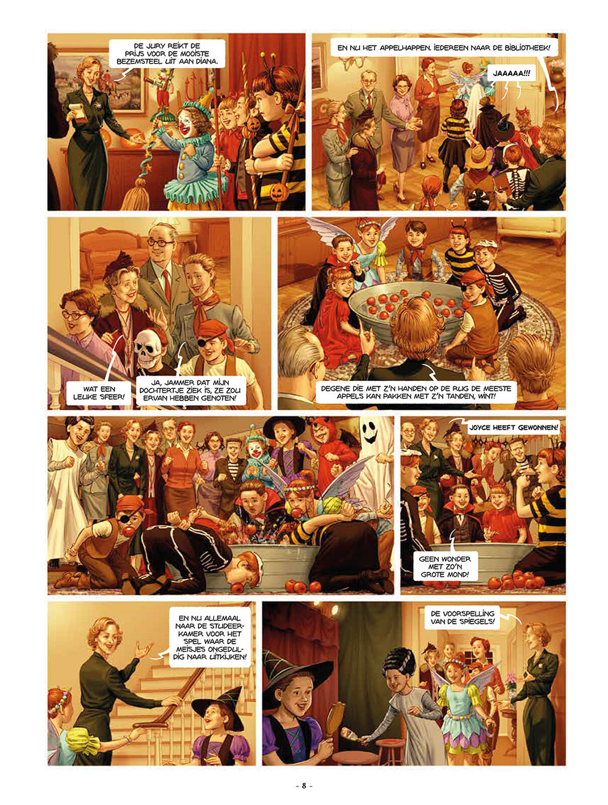 "Eind oktober wordt in het kleine dorpje Woodleigh Common Halloween gevierd, met heksen en spoken. Rowena Drake, een vooraanstaand lid van de gemeenschap, ontvangt gasten voor een avond die men niet snel zal vergeten! Maar wanneer een jonge deelneemster beweert ooit een moord te hebben gezien, neemt niemand haar serieus, aangezien ze bekendstaat om haar leugens. Totdat, aan het einde van de avond, haar lichaam wordt gevonden in de bibliotheek. Het feest is voorbij, de echte zaak begint voor Hercule Poirot! Met zijn scherpe verstand zal hij alles op alles moeten zetten om de moordenaar te achterhalen."