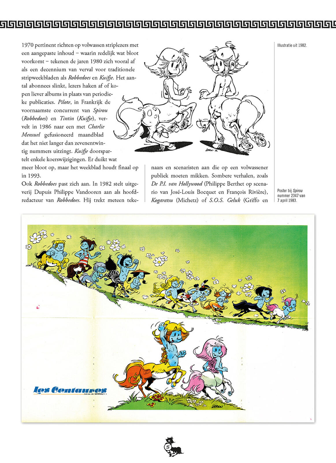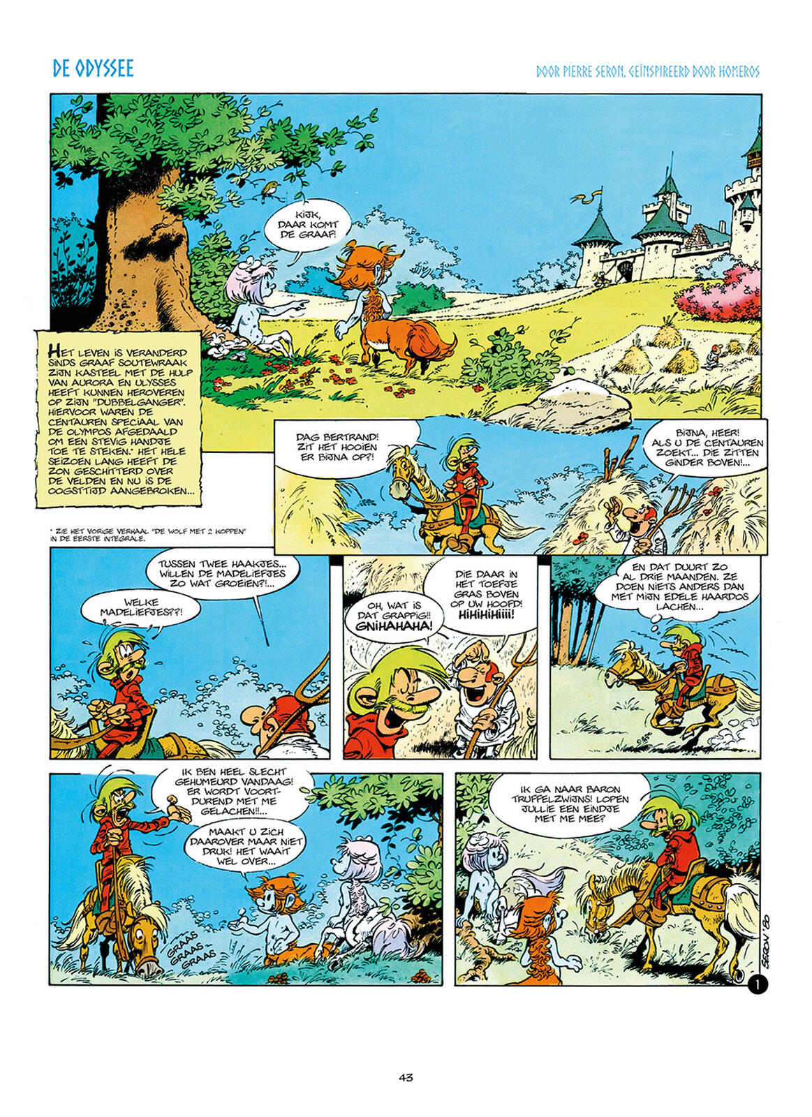 "Pierre Seron kwijt zich in de jaren 1980 met veel inzet en productiviteit aan zijn twee reeksen De Minimensjes en Aurora en Ulysses, Centauren. Zowel uitgeverij Dupuis als het weekblad Robbedoes, waarin beide reeksen in voorpublicatie verschijnen, veranderen in deze periode definitief. De familie Dupuis verkoopt het bedrijf aan een investeringsmaatschappij en Robbedoes verdwijnt ei zo na van het striptoneel. Aurora en Ulysses moeten helaas verdwijnen."