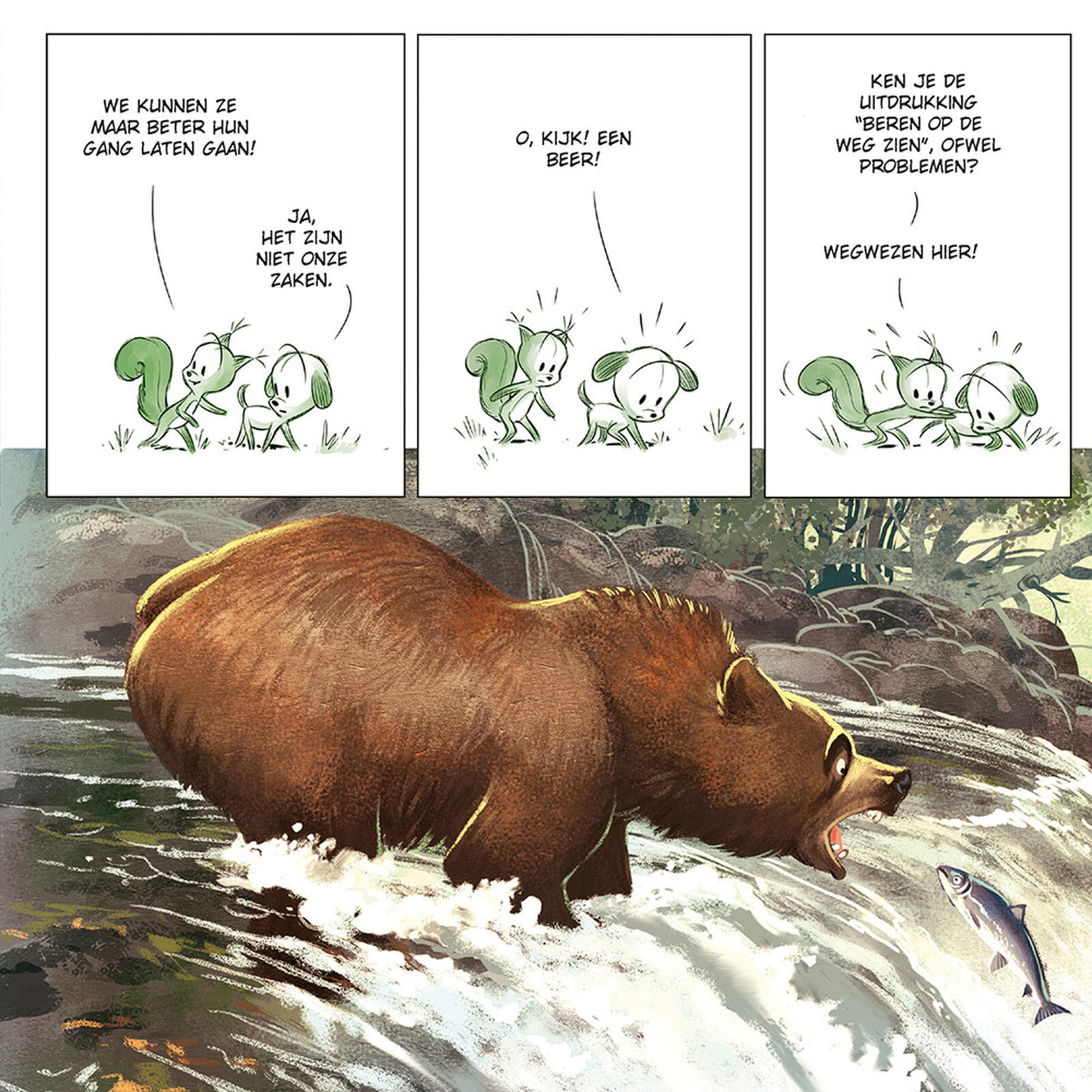 "De wat angstige boef blijft liever in zijn mandje liggen, dat is bekend. Maar zijn beste vriend Babbel is een avontuurlijke eekhoorn, dus die boswandeling kan hij moeilijk weigeren toch? Oké, dan is hij geen dapper hondje, geeft niks, zijn vriend helpt hem wel over zijn angst heen..."