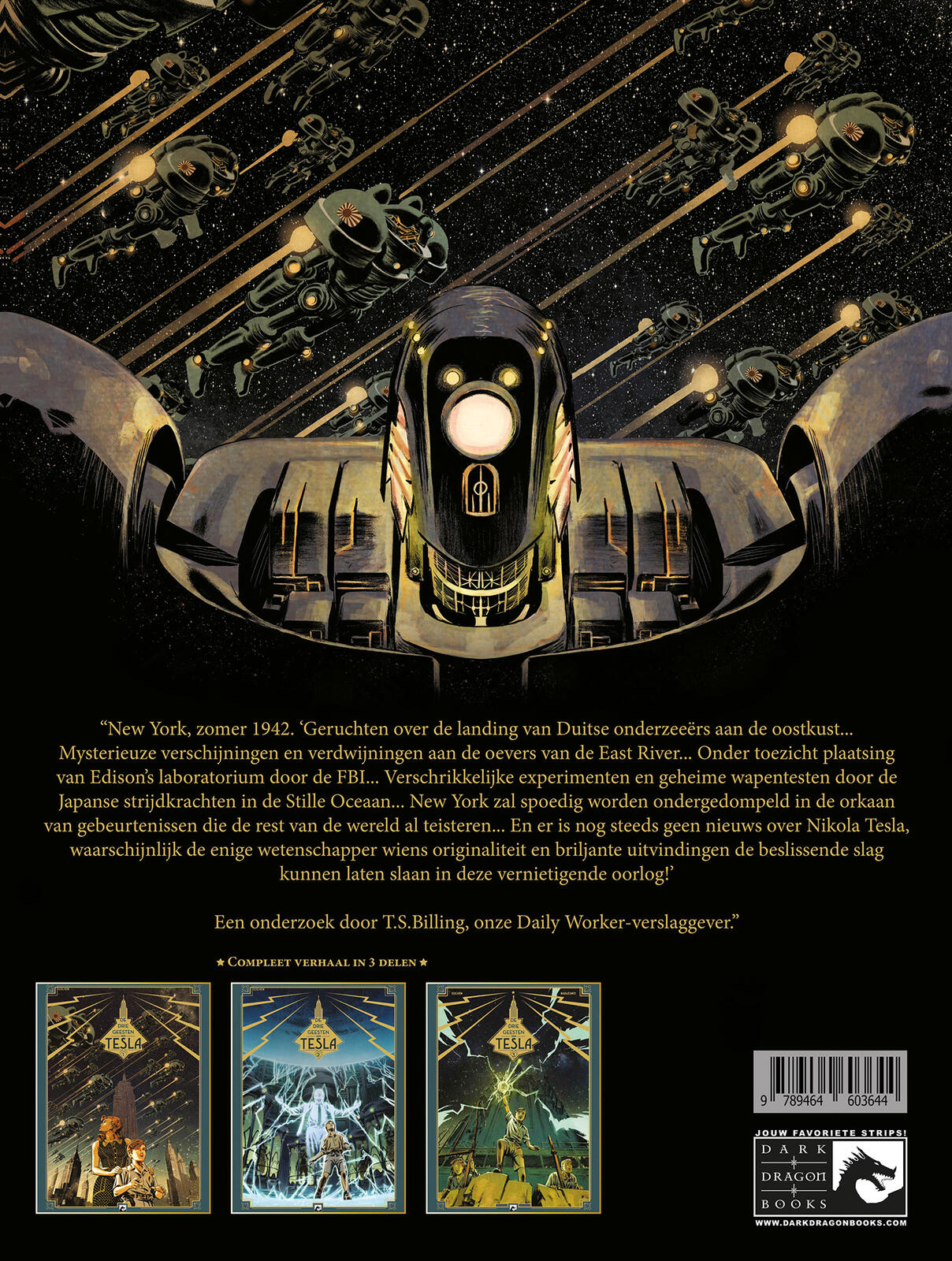 "New York, zomer 1942. 'Geruchten over de landing van Duitse onderzeeërs aan de oostkust... Mysterieuze verschijningen en verdwijningen aan de oevers van de East River... Onder toezicht plaatsing van Edison’s laboratorium door de FBI... Verschrikkelijke experimenten en geheime wapentesten door de Japanse strijdkrachten in de Stille Oceaan... New York zal spoedig worden ondergedompeld in de orkaan van gebeurtenissen die de rest van de wereld al teisteren... En er is nog steeds geen nieuws over Nikola Tesla, waarschijnlijk de enige wetenschapper wiens originaliteit en briljante uitvindingen de beslissende slag kunnen laten slaan in deze vernietigende oorlog!' Een onderzoek door T.S.Billing, onze Daily Worker-verslaggever."