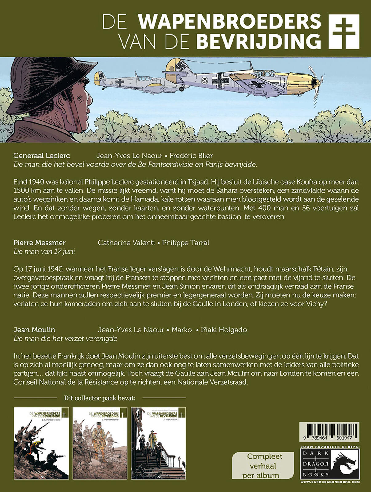 Deel 3, Jean Moulin, door Marko, Iñaki Holgado en Jean-Yves Le Naour: "Wanneer de geallieerden in november 1942 landen in Noord-Afrika, steunen ze generaal Giraud om de plannen van generaal de Gaulle te dwarsbomen. Maar de man die op 18 juni 1940 opriep om de strijd van Frankrijk voort te zetten, is niet het type om zich zomaar uit de politieke arena te laten schuiven. In het bezette Frankrijk doet Jean Moulin zijn uiterste best om alle verzetsbewegingen op één lijn te krijgen. Dat is op zich al moeilijk genoeg, maar om ze dan ook nog te laten samenwerken met de leiders van alle politieke partijen... dat lijkt haast onmogelijk. Toch vraagt de Gaulle aan Jean Moulin om naar Londen te komen en een Conseil National de la Résistance op te richten, een Nationale Verzetsraad."
