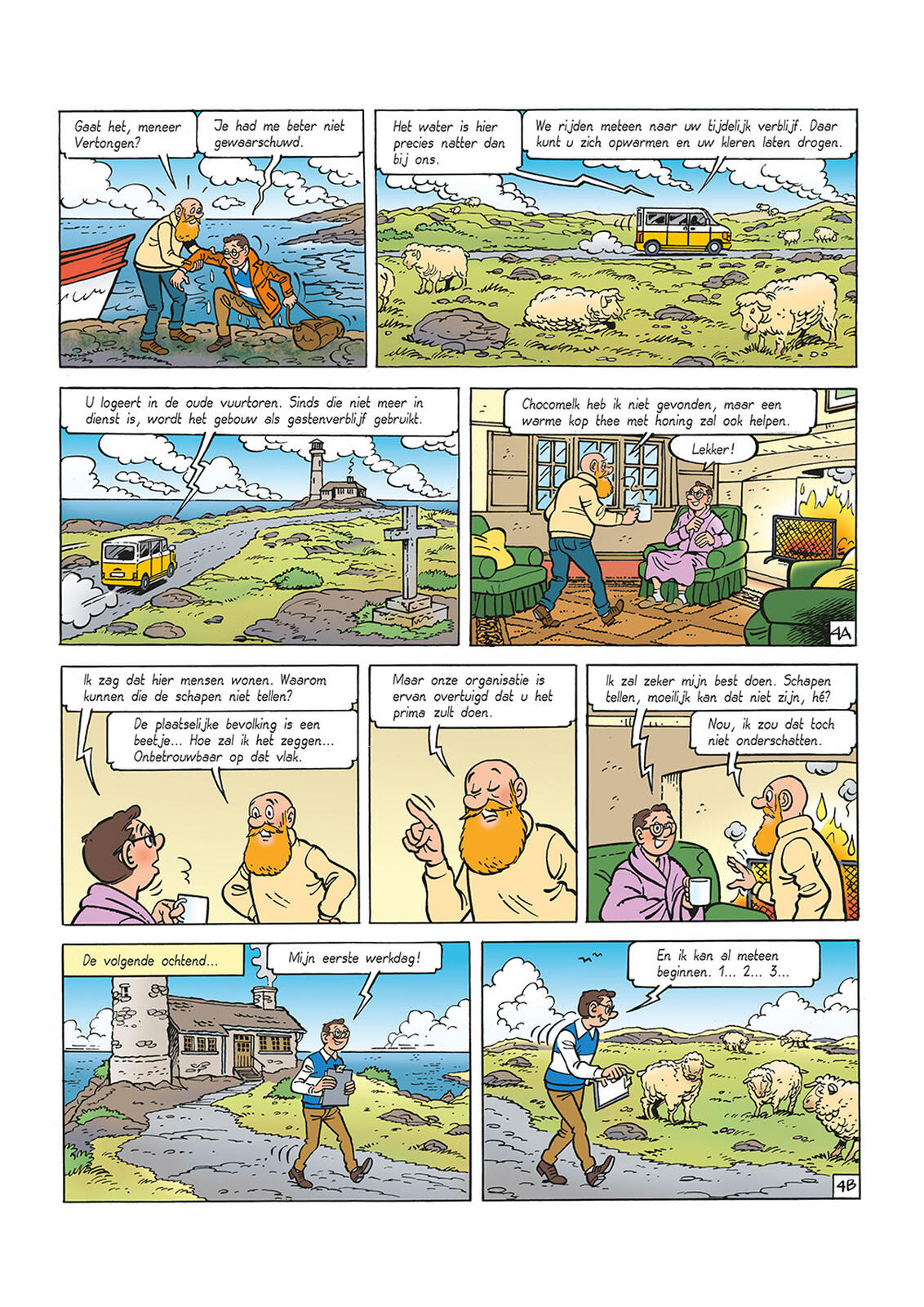 "Mark Vertongen, altijd op zoek naar een geschikte baan, vindt werk op een van de Kanaaleilanden, waar hij de aanwezige schapen gaat tellen in het kader van een wetenschappelijk project. Een job waarbij hij voortdurend in slaap valt. Bieke, Oma Boma en Paulien reizen hem achterna en besluiten hem bij zijn onmogelijke taak te helpen. Ze maken kennis met een Indiase professor, die het experiment leidt. Maar er zijn ook militairen op het eiland aanwezig, die bijzonder geïnteresseerd zijn in het onderzoek. Een bijkomende eigenaardigheid is dat heel wat mensen dronken rondlopen op het eiland en een aantal van hen lijkt uiterlijk op inspecteur Porei."