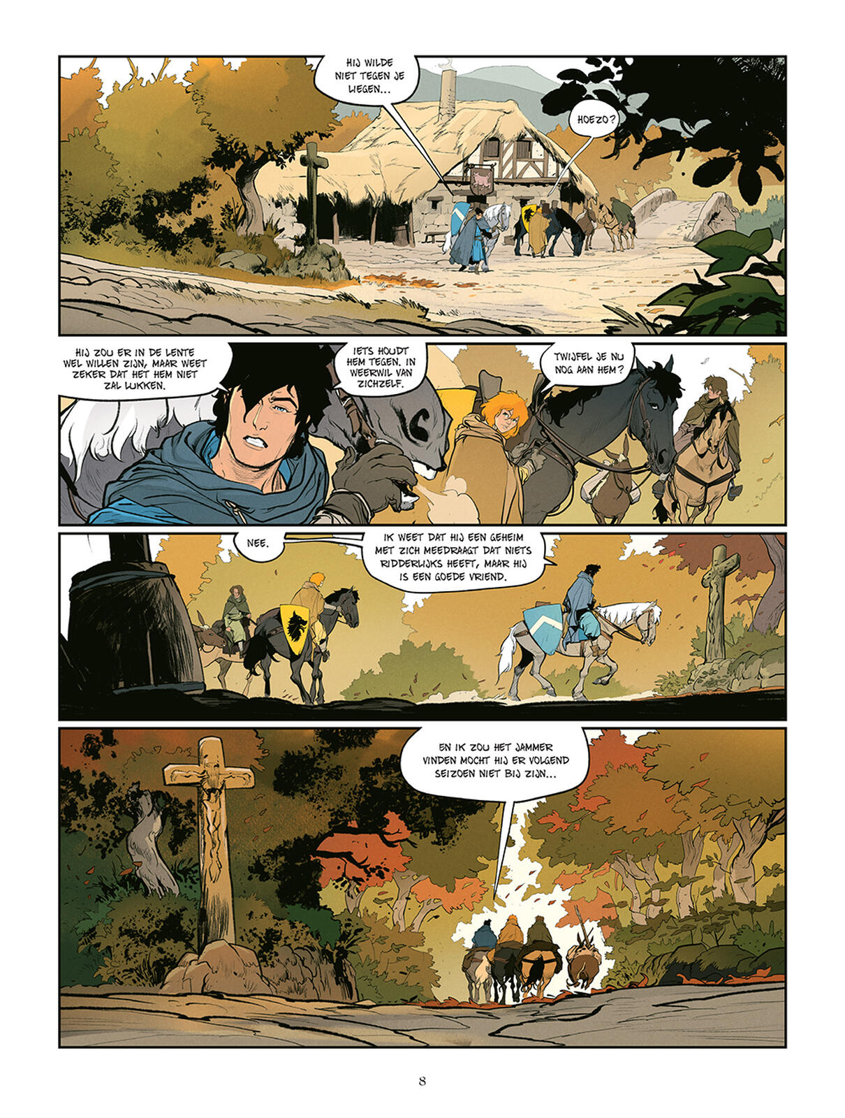 "Onze helden komen stilaan in de buurt van het kasteel van Jehans vader. Het wordt tijd om afscheid te nemen. Ook Lancelin en Maïeul moeten naar huis. En precies daarop wachtten Gaucher en zijn kompanen al wekenlang: nu de wegen van hun vijanden scheiden, kunnen zij ze een voor een aanvallen. De schurk wil zich wreken op de Zwarte ridder, die hem zo heeft vernederd. Maar dat is buiten de moed en sluwheid van Lancelin gerekend. Lancelin raakt zwaargewond maar wordt gelukkig gevonden door Jehan en Josselin. Zij brengen hem naar het Adelaarsnest, de woning van Jehans zonderlinge oom, die ze nog nooit heeft gezien. Die ontmoeting zet haar hele wereld op zijn kop..."