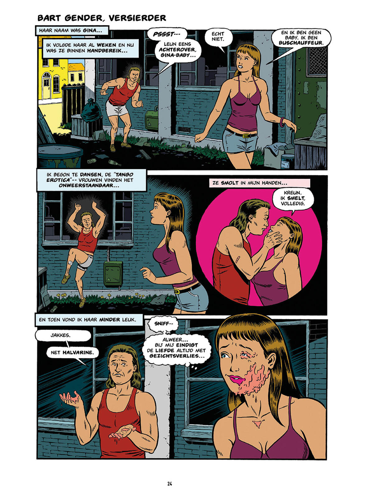 Charles Guthrie moet wel een van de best bewaarde geheimen van de Nederlandse strip zijn. Eindelijk is het absurdistische en zwarthumoristische werk van deze in Leeuwarden neergestreken Amerikaan, die onder andere in Zone 5300 publiceert, gebundeld in een mooie uitgave. Maak kennis met Guthries surrealistische universum, dat wordt bevolkt door Dijkgraaf Dick, Ginger Infinity, Homofoon Harry en de Wasemman. Dat alles superieur getekend in de stijl van EC Comics en de oude superheldenstrips.