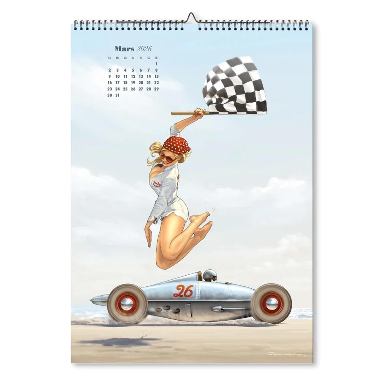 Voor deze Franstalige 2026-jaarkalender (A3-formaat) selecteerde Romain Hugault heerlijke pin-ups en ronkende vliegtuigen zodat jij er het hele jaar van kan genieten."
