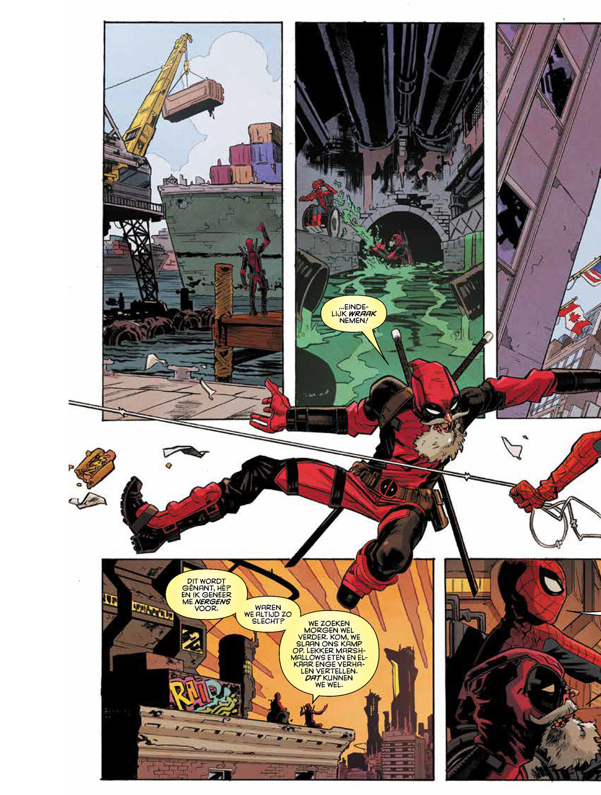 "Spidey en Deadpool slaan de handen ineen in twee tijdperken! In het heden worden ze geplaagd door Deadpool dubbelgangers, terwijl in de toekomst Old Men Parker en Wilson hun eigen problemen hebben! Deze twee tijdlijnen staan op het punt te botsen, dankzij Clonepool! Wie is hij, wat is hij en waar komt hij vandaan? En hebben twee mopperige oude helden een kans om de fouten van hun jongere zelf recht te zetten wanneer ze ook geconfronteerd worden met tientallen Doppelpools? Ondertussen hebben de acties van ons duo in het heden ernstige gevolgen. Serieus, gevolgen van het kaliber ‘Oorlog-met-alle-superhelden-van-het-Marvel-Universe’."