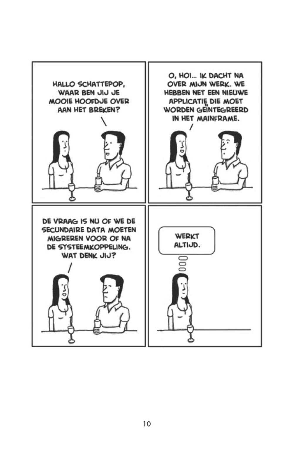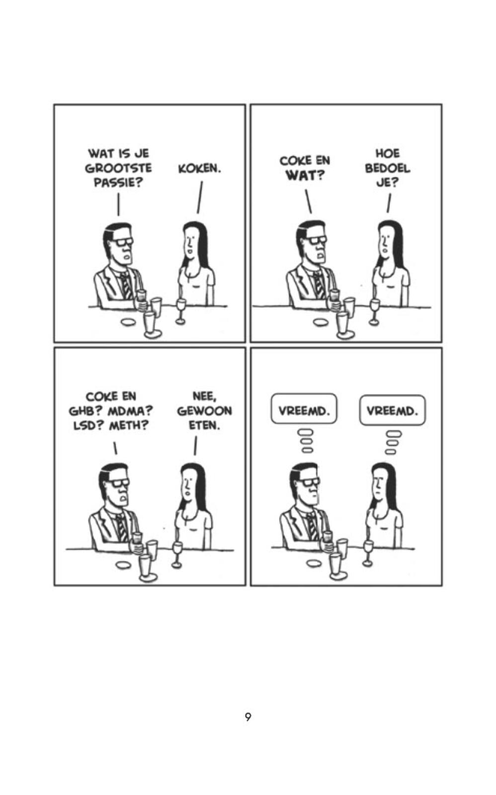 "De heftigste kantoorstrip van Nederland en Vlaanderen! Iedere werkdag om 9.00 uur, al dertien jaar lang, verschijnt er een hilarische Van 9 tot 5-strip op Facebook, Twitter en Instagram. Meer dan honderdduizend mensen lezen daar hoe het kantoorleven op de hak wordt genomen. De populaire strip verschijnt ook zes keer per week in De Morgen (en jarenlang ook in NRC Next) en in Veronica Superguide.