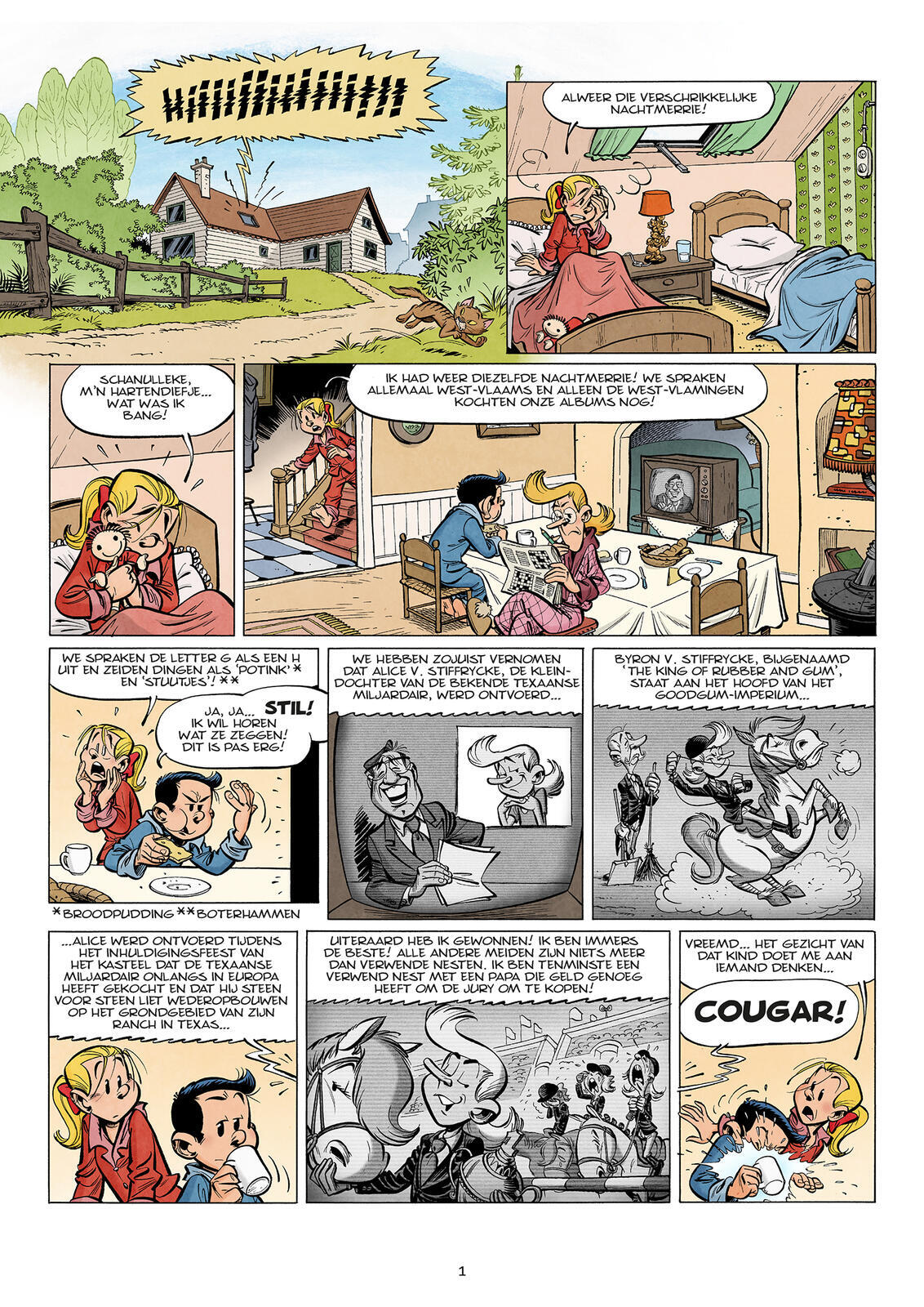 De korte inhoud: "Een geheimzinnige vogel, een witte raaf met een bolhoed op de kop en overmaatse schoenen aan de poten, vervangt een van de eieren uit Wiskes boodschappenmandje door een toverei. Wanneer Tante Sidonia voor Jerom een omelet klaarmaakt, weerklinkt plots een luide knal. Waar ze stond te koken, ligt nu een klein meisje dat verdacht veel op haar lijkt. Het is niemand minder dan Alice Van Stiffrycke, de ontvoerde kleindochter van de Texaanse miljardair Byron Van Stiffrycke... Hiermee kondigt zich voor onze vrienden een avontuur aan vol magische wezens, gevaarlijke boeven, heksen en... rotte eieren!"