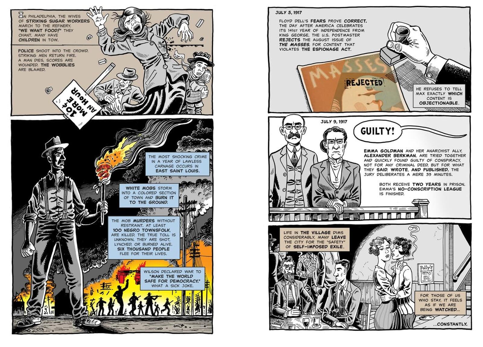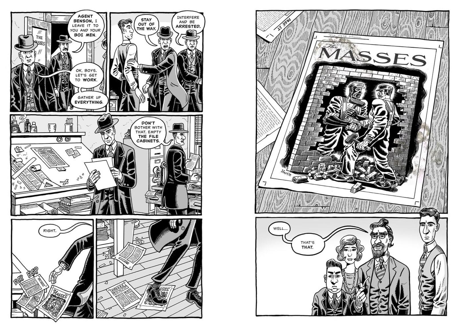 The Dissidents volgt een groep echte en invloedrijke politieke cartoonisten die voor het tijdschrift The Masses werkten — Art Young, Boardman Robinson, Cornelia Barns en anderen, destijds dominant maar nu vergeten ― evenals een fictieve jonge Duitse immigrant uit Cleveland, Joe Hertle, die naar New York is gekomen om naam te maken. Ze gaan om met de grote oppositiestemmen van die tijd, zoals journalisten Max Eastman en John Reed, en de radicale provocatrice Emma Goldman. Wat ze in hun cartoons en illustraties vastleggen, is een land dat in een neerwaartse spiraal terechtkomt, aangevallen door Duitse saboteurs en particuliere milities, geteisterd door racisme en opgeschrikt door klassenstrijd. Omdat ze de tijd waarin ze leven vastleggen, worden deze cartoonisten beschuldigd van opruiing en door de Amerikaanse regering voor de rechter gebracht, met een straf van twintig jaar boven hun hoofd. Twee anderen worden gedwongen het land te ontvluchten en in ballingschap te gaan. Een ander wordt opgesloten door het Amerikaanse leger en staat op het punt te worden geëxecuteerd!