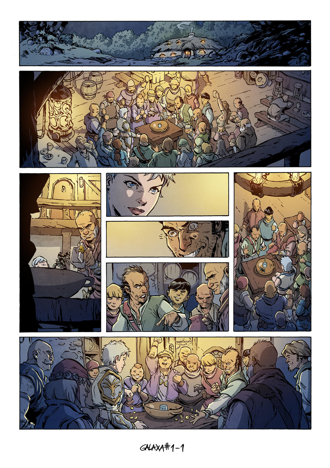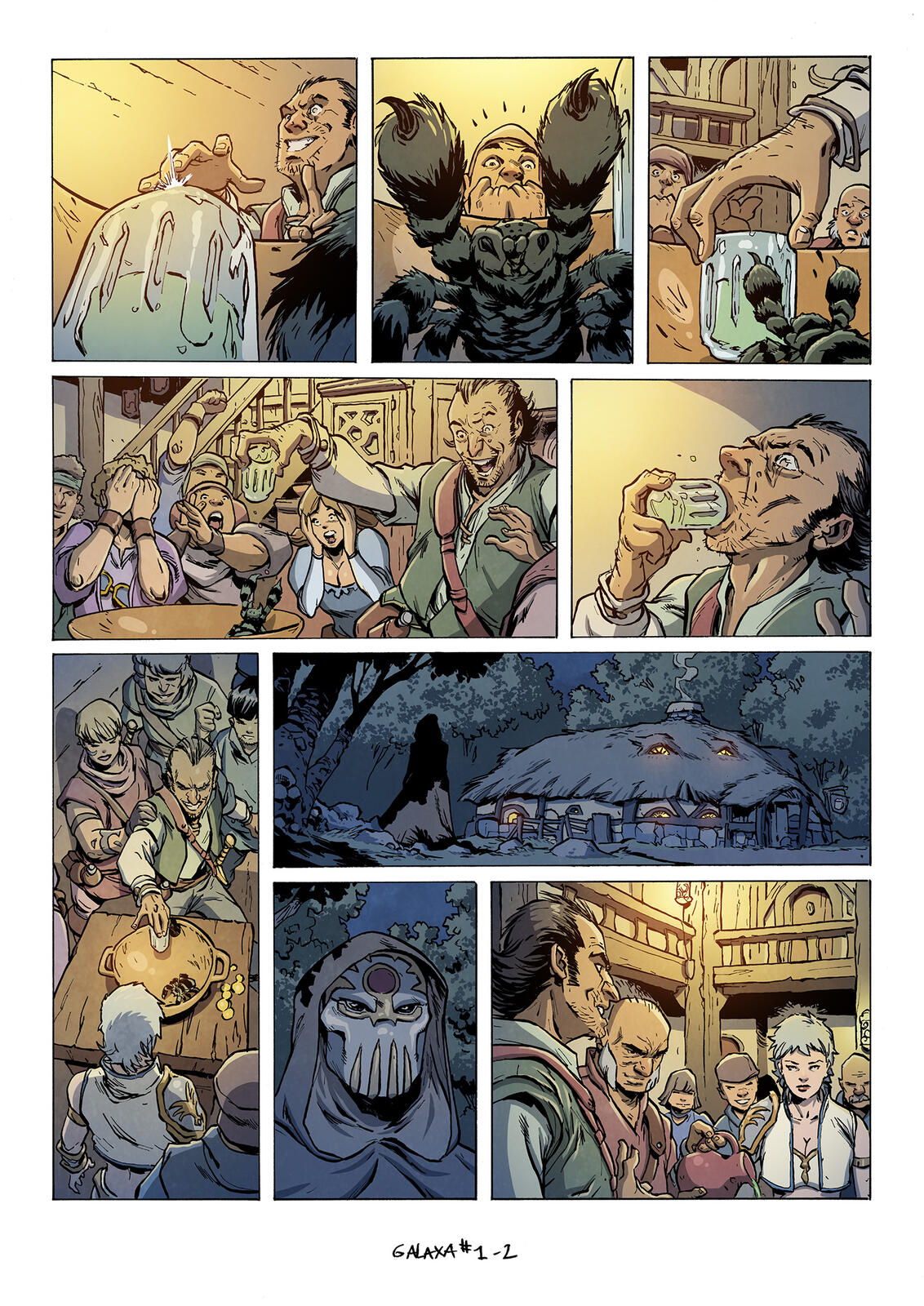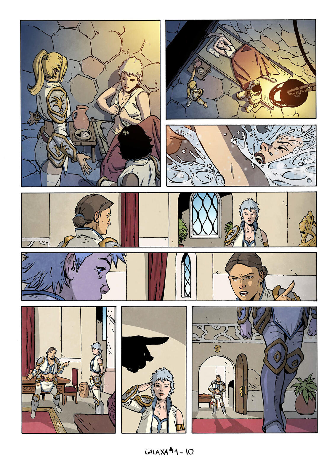 "Ik heb bij het schrijven Karel Biddeloo in het achterhoofd gehouden. Voor mij is hij — meer dan Willy Vandersteen — de auteur van De Rode Ridder waarin Galaxa verscheen. Er wordt dus geregeld een zwaard getrokken, een monster bestreden en hier en daar een beetje geshockeerd. Ook qua sfeer en zelfs taalgebruik heb ik me laten beïnvloeden. Toch is het geen copy/paste. Ik ben grote fan van zijn haast pulpachtige aanpak, maar wij zijn met Galaxa voor een iets volwassener, rijkere uitgave gegaan, wat voor alle duidelijkheid niets met de inhoud te maken heeft. De scenario’s van Biddeloo zijn qua inventiviteit trouwens een grote inspiratiebron. Wat wel een belangrijk verschil maakt, is dat er een duidelijke rode draad doorheen de albums zal lopen, wat minder het geval was bij de oude De Rode Ridder-verhalen. De virtuoze tekeningen van Romano en het magnifieke kleurwerk van Shirow Di Rosso maken er verder een filmisch epos van. Ik geloof dat de fans niet teleurgesteld zullen zijn. "