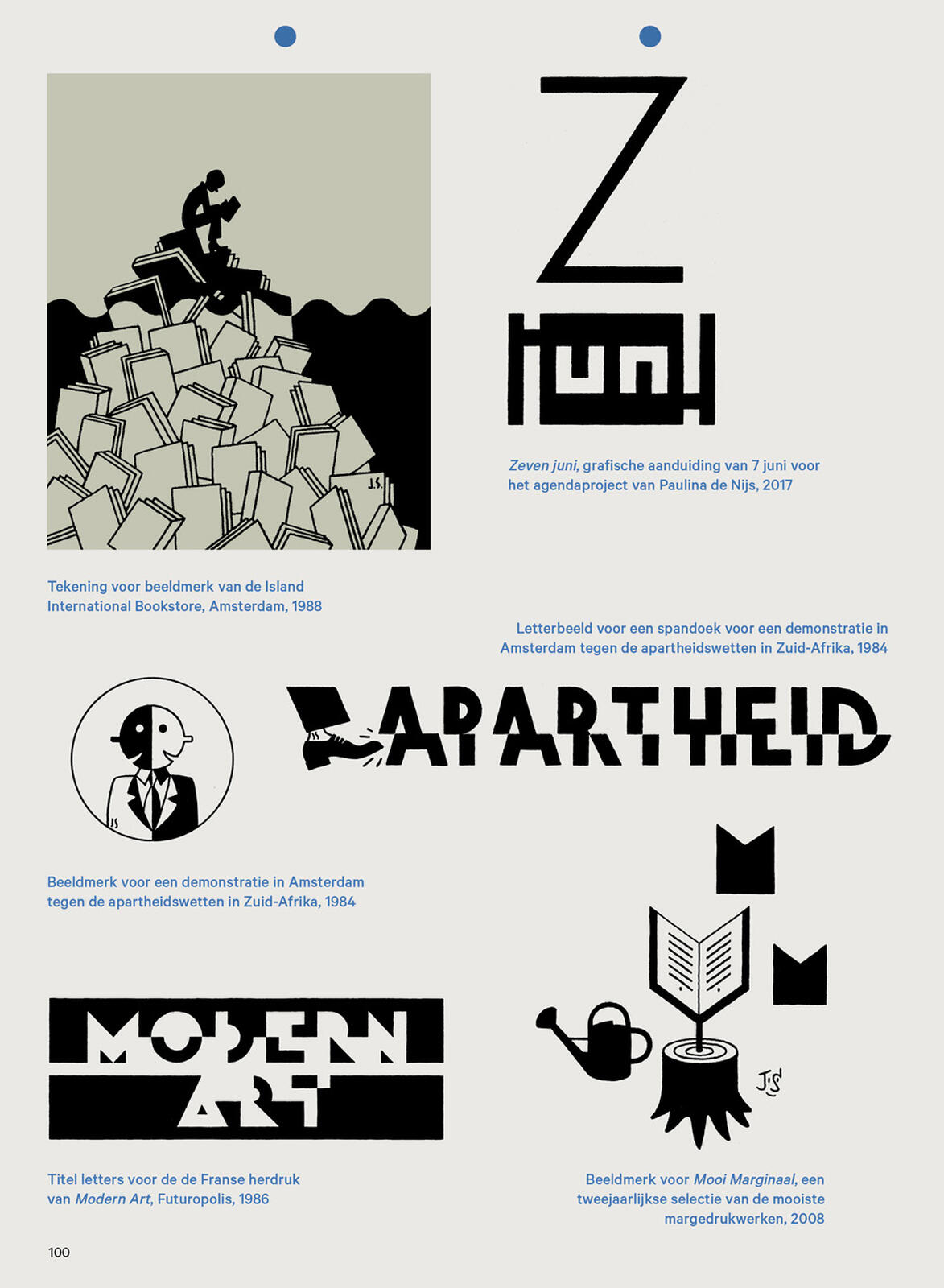 "In het œuvre van Joost Swarte speelt het boek een hoofdrol. Hij heeft er vele vol getekend, vormgegeven en van omslagen voorzien. In deze uitgave ligt het accent op het boek, als object, als levend wezen, en ook als drager van ideeën, die het boek zijn toevertrouwd. Aanvullend zien we pictogrammen en silhouetten, bescheiden, betekenisvolle vignetten. Beeldtaal in essentie, ergens tussen een tekening en het alfabet."