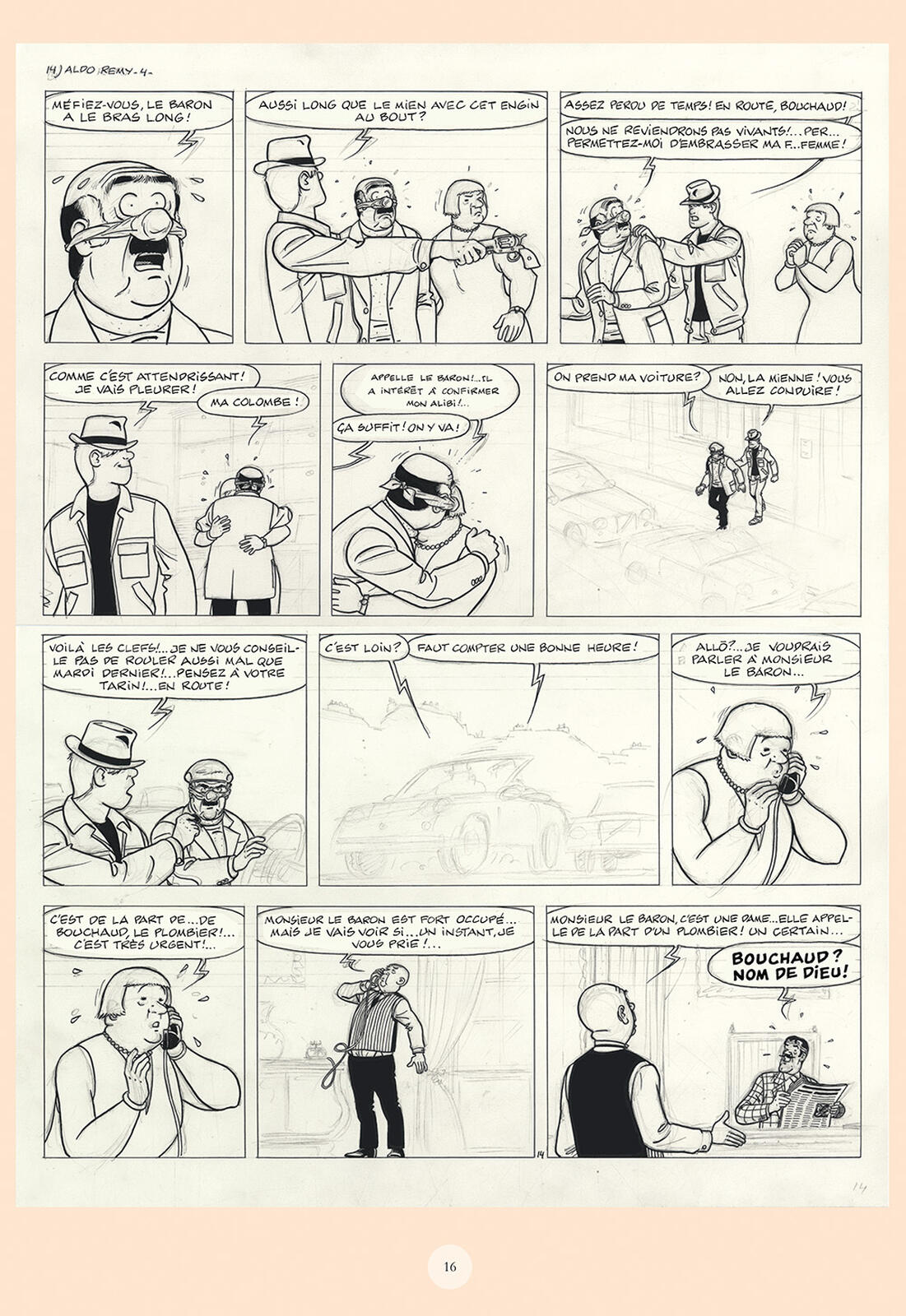 Het speciale aan de postume uitgave is dat het facsimile wordt uitgegeven met scans van de originelen, in feite dus als een artist's edition. Daardoor zal ook te zien zijn dat het nog niet helemaal af was. Hier en daar zijn decors nog in potlood of is er in een paar gevallen een foto van een nog na te tekenen gebouw op het origineel gekleefd. Geen nood, het hele verhaal is perfect leesbaar, tot de allerlaatste pagina, met alle dialogen en personages. En in deze vorm komt het ook uit in het Nederlands. Op de bonuspagina's staan losse tekeningen, een interview uit 2006, reproducties van alle covers, personagestudies en voorbeelden van hoe Tibet te werk ging als scenarist en tekenaar. Het hardcoveralbum telt 56 pagina's en zal 49 euro kosten, te verschijnen in mei. In beide talen gaat het om een gelimiteerde oplage van slechts enkele honderd exemplaren.